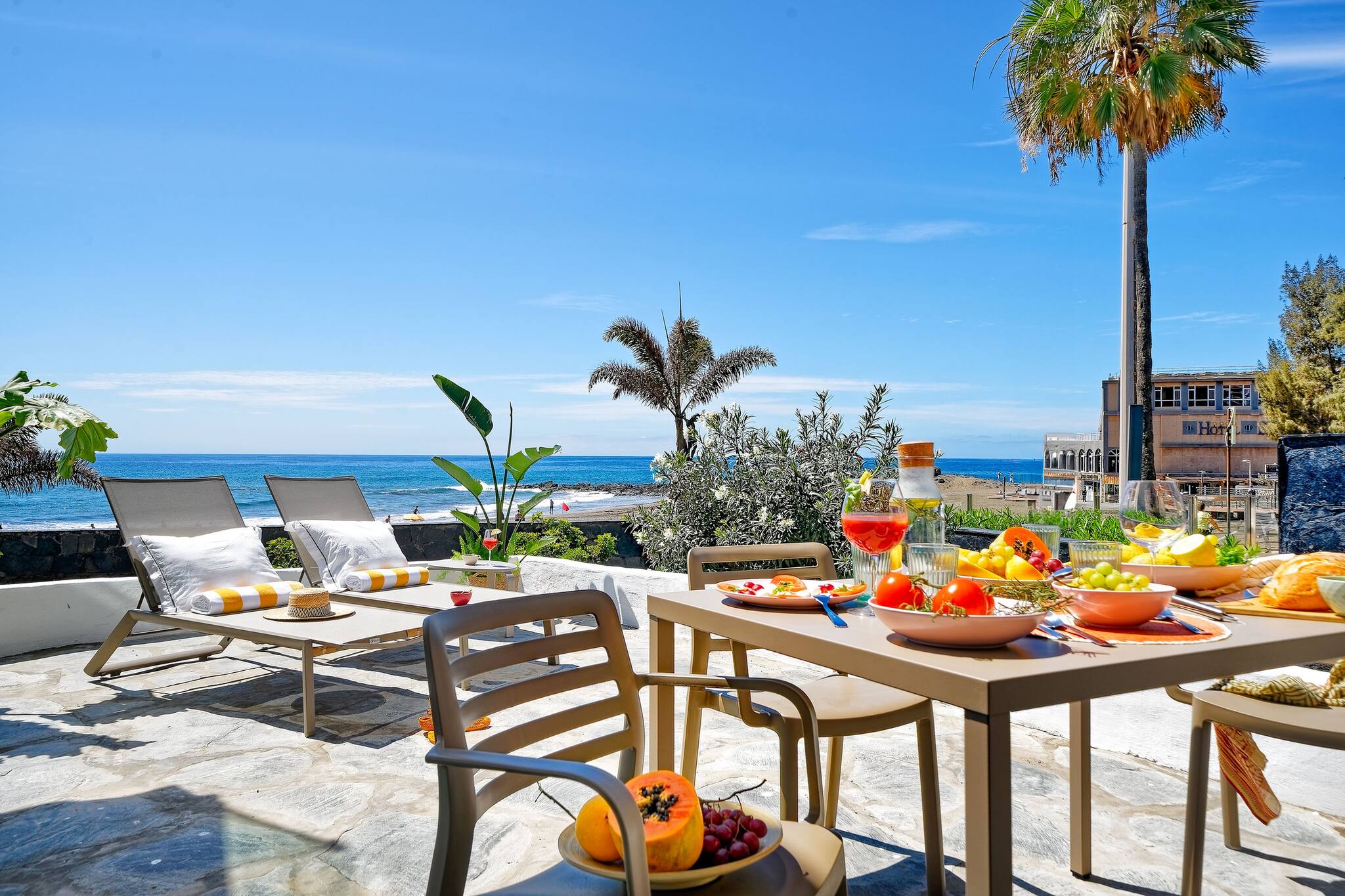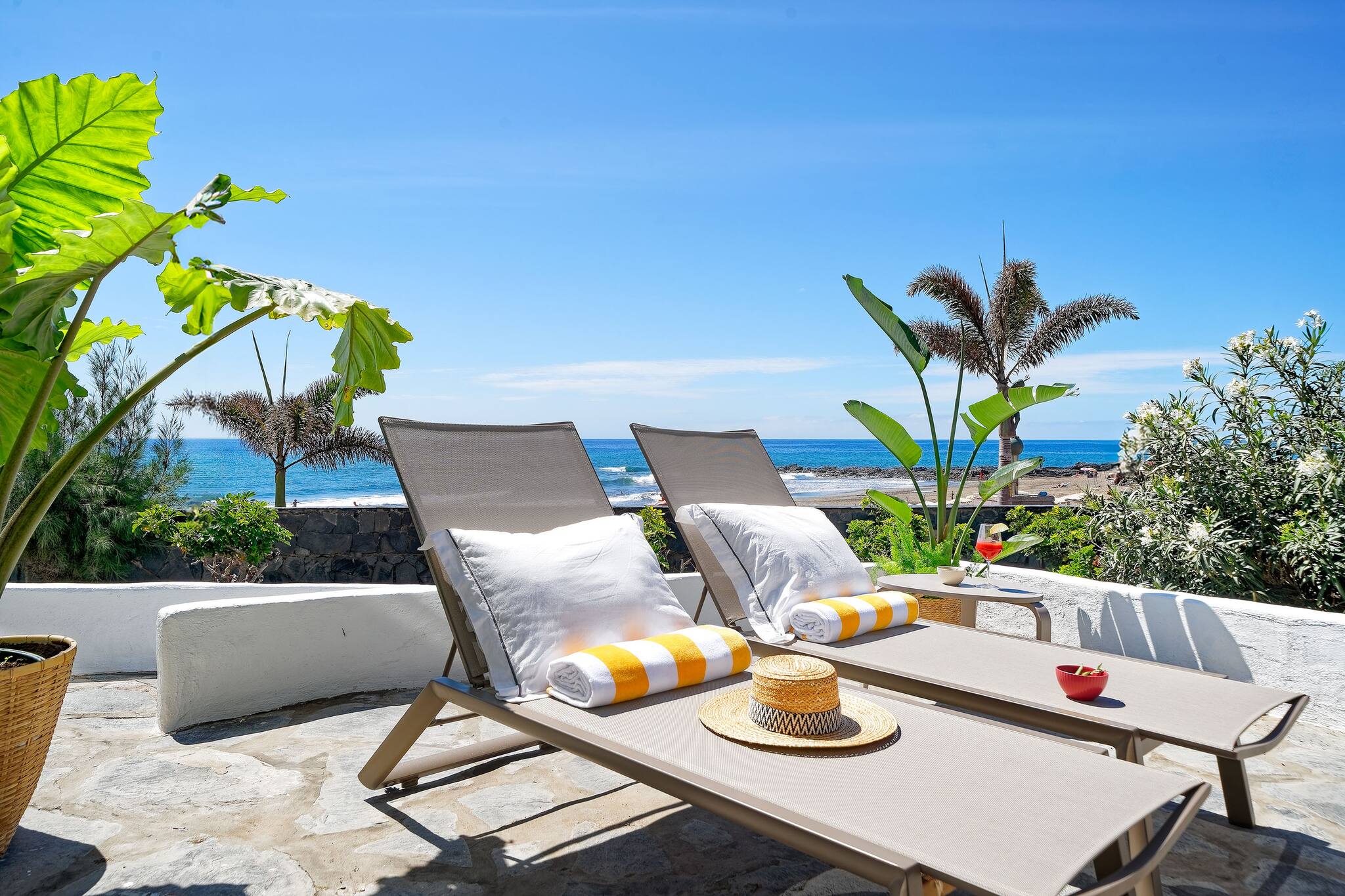 🌅 Terraza con vistas al mar, mesa y tumbonas