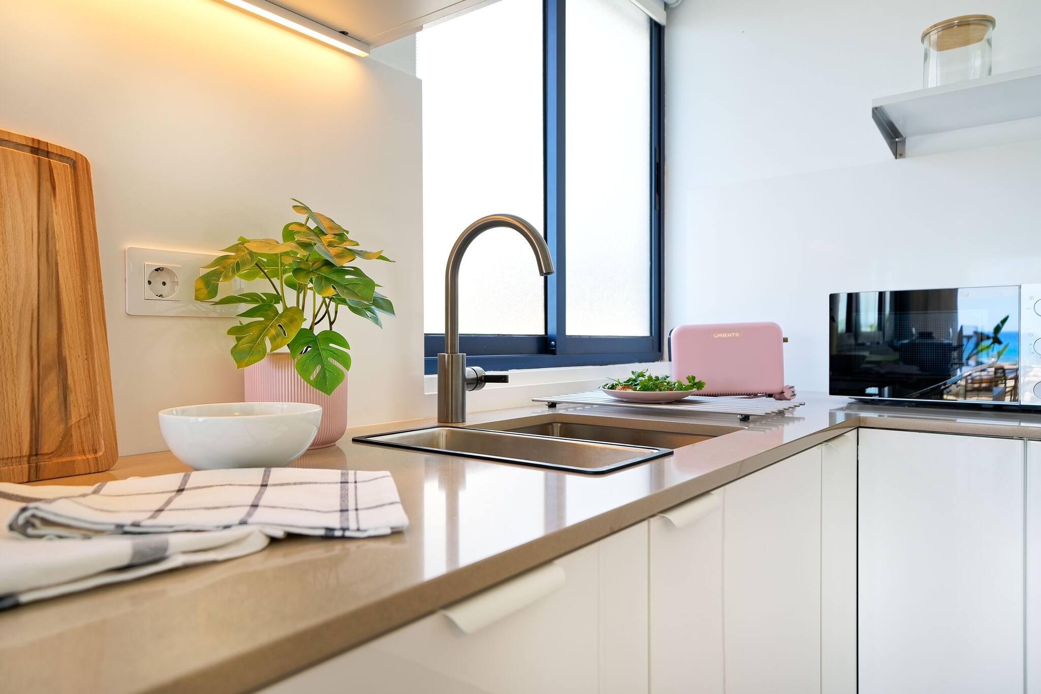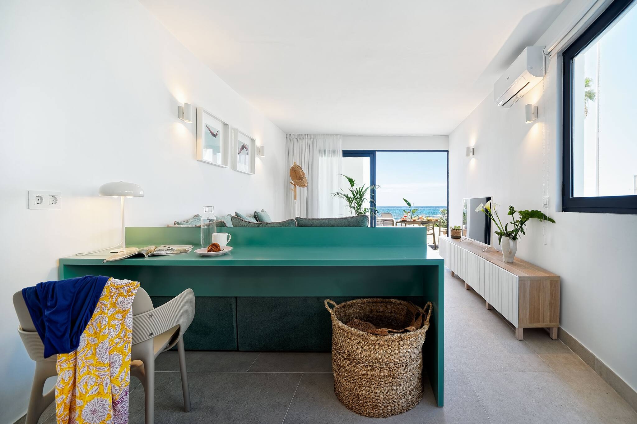 La vivienda ha sido cuidadosamente decorada para ofrecer funcionalidad, calidez y diseño. Su terraza privada con vistas al mar es el lugar perfecto para disfrutar de los amaneceres, comer al aire libre o simplemente relajarse al sol.