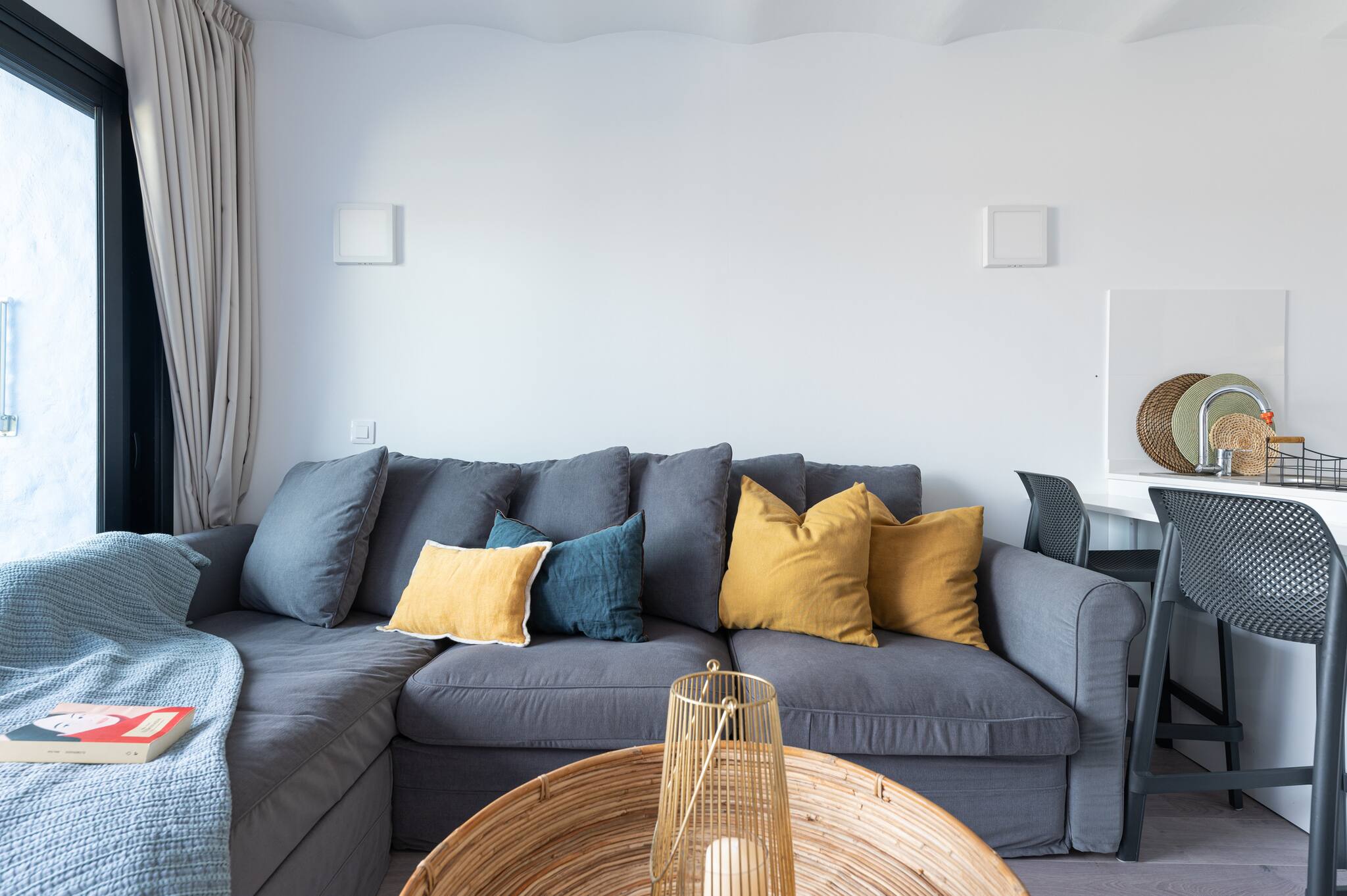La vivienda ha sido cuidadosamente decorada para ofrecer funcionalidad, calidez y diseño. Su terraza privada con vistas al mar es el lugar perfecto para disfrutar de los amaneceres, comer al aire libre o simplemente relajarse al sol.