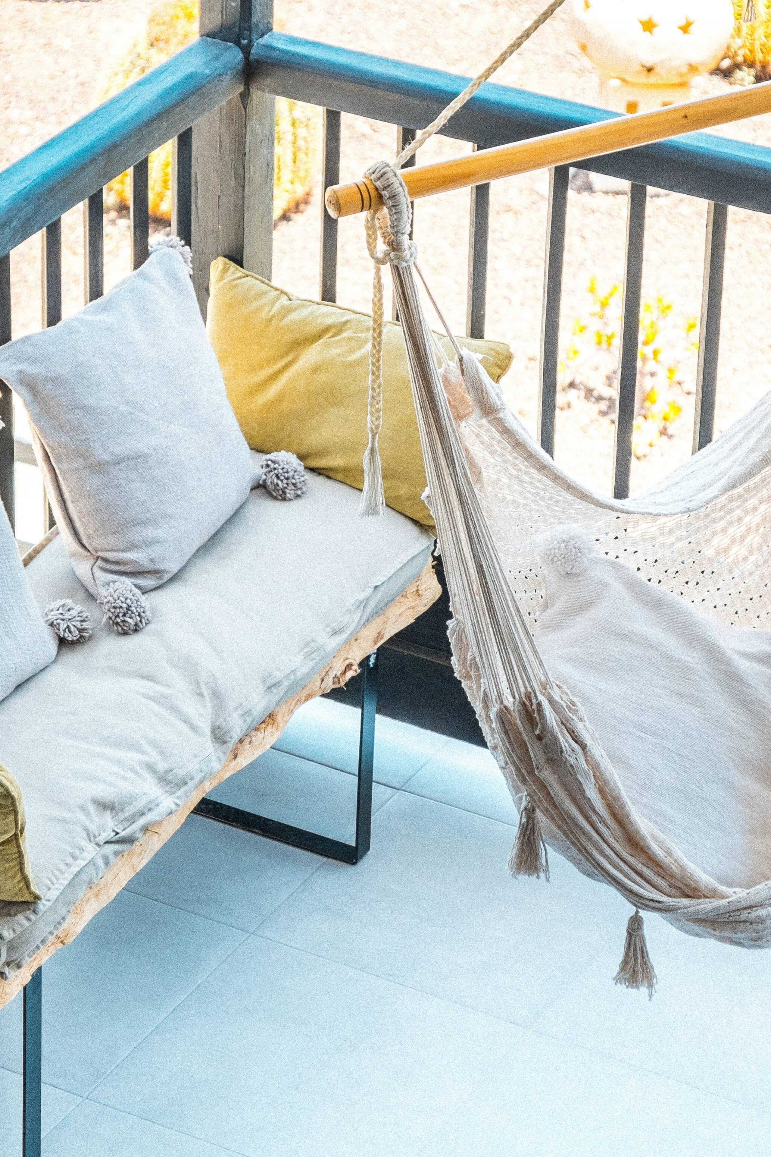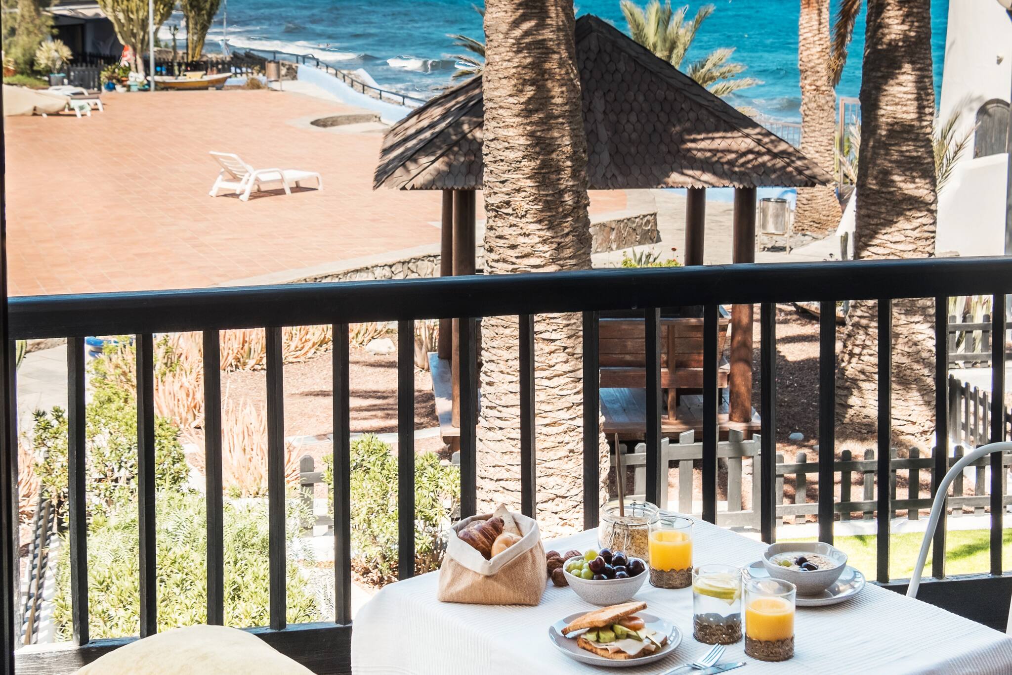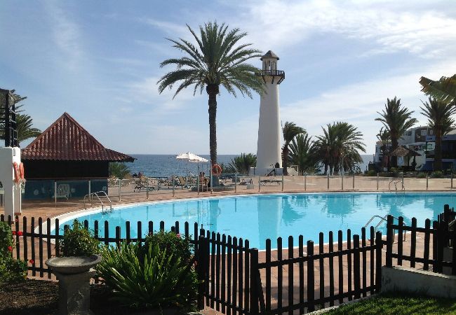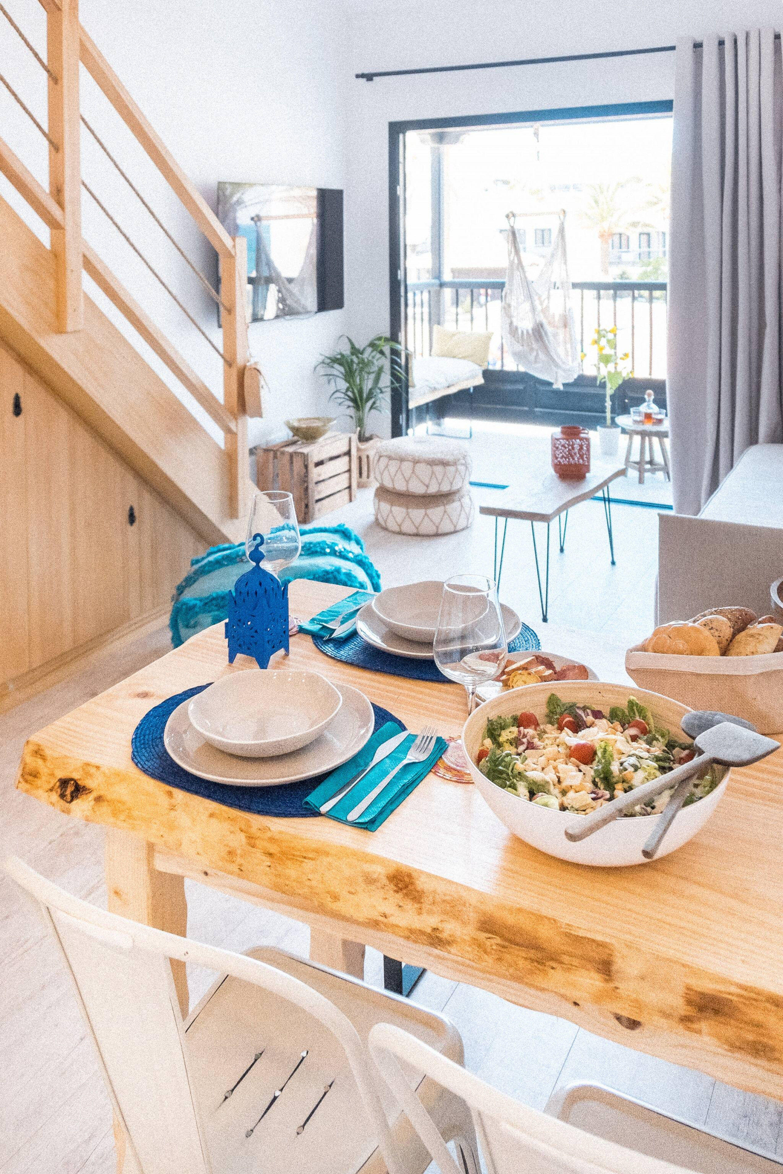 Desde el salón se accede a una terraza privada con tumbonas, perfecta para disfrutar del sol y el clima de Gran Canaria. El complejo cuenta con puerta directa a la avenida de la playa, lo que te conecta en segundos con el mar.