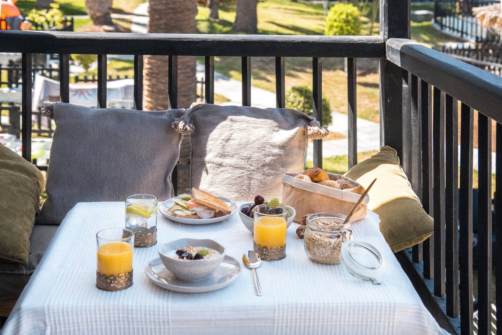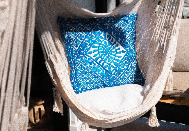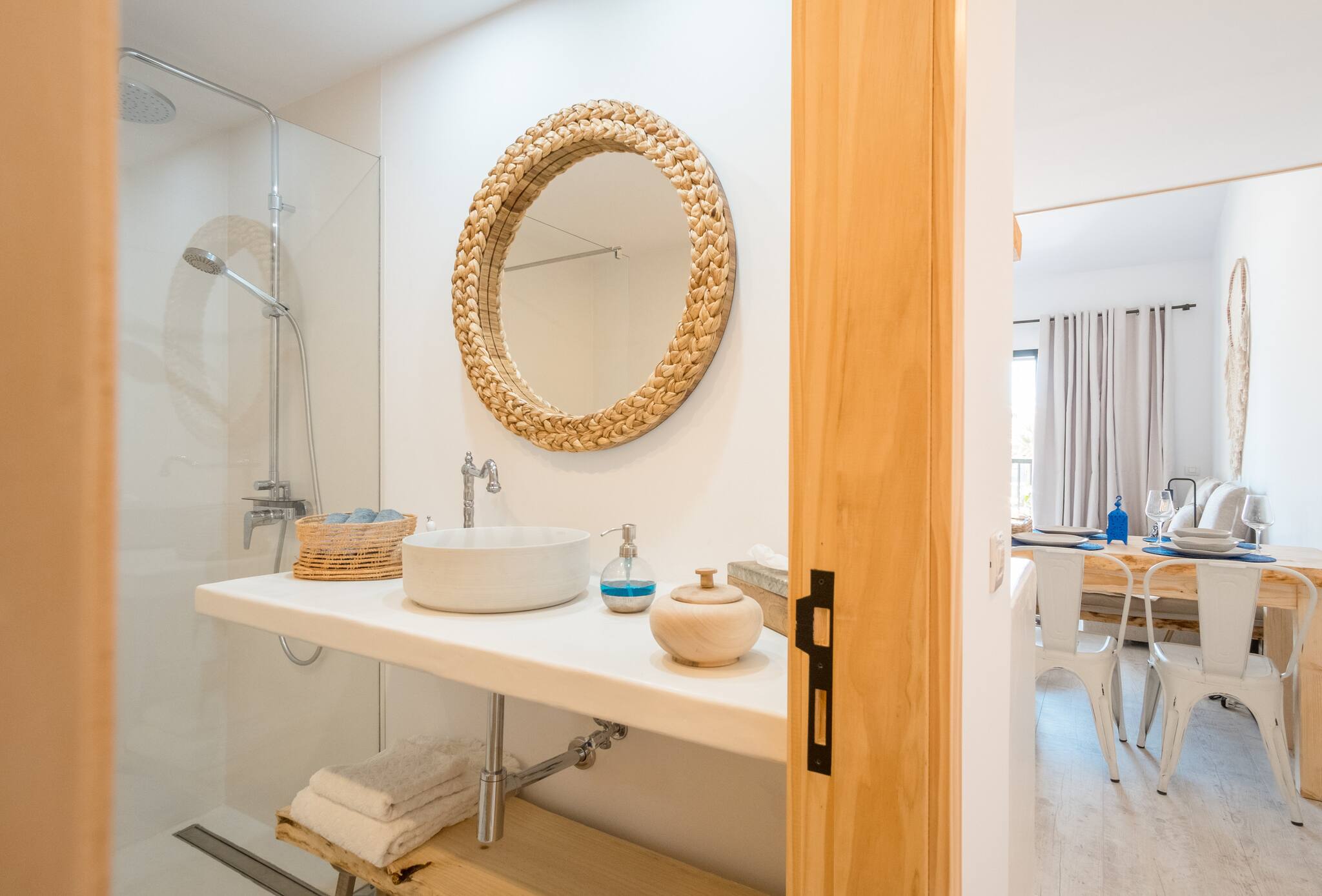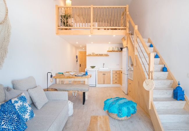 La terraza privada con vistas al mar, situada a escasos metros de la orilla, es uno de los rincones más especiales del apartamento. Está equipada con mesa y tumbonas, perfecta para desayunar o disfrutar de los amaneceres.