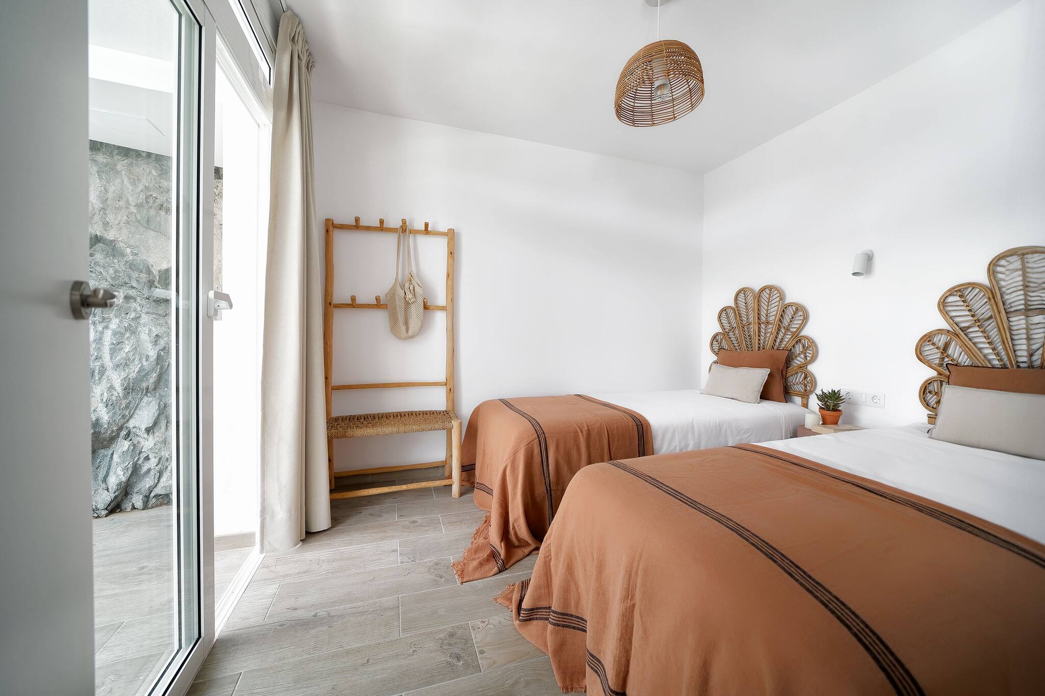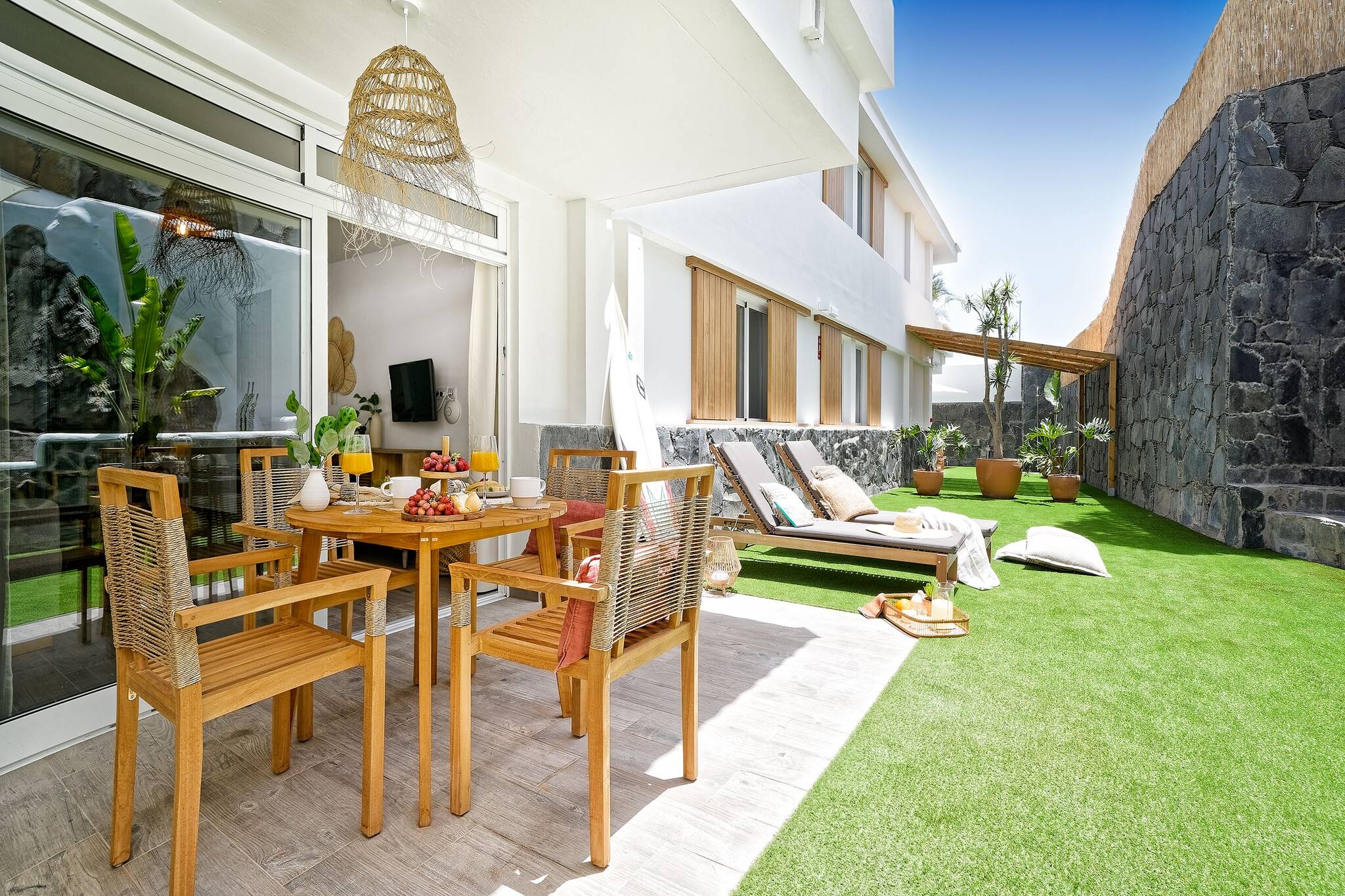 Este apartamento ofrece una amplia terraza para tumbarte al sol y ducha al aire libre. Dispone de cocina completamente equipada, sofá cama en la sala de estar y dos dormitorio. Descubre la auténtica vida isleña hospedándote en Pura Vida San Agustín y vive la esencia de Gran Canaria.