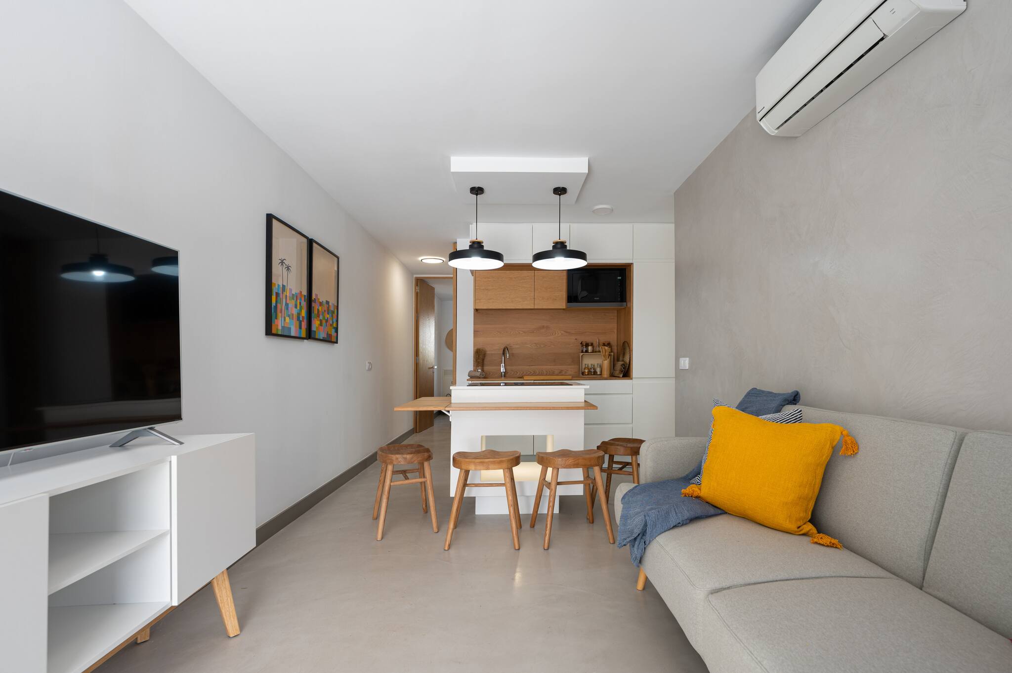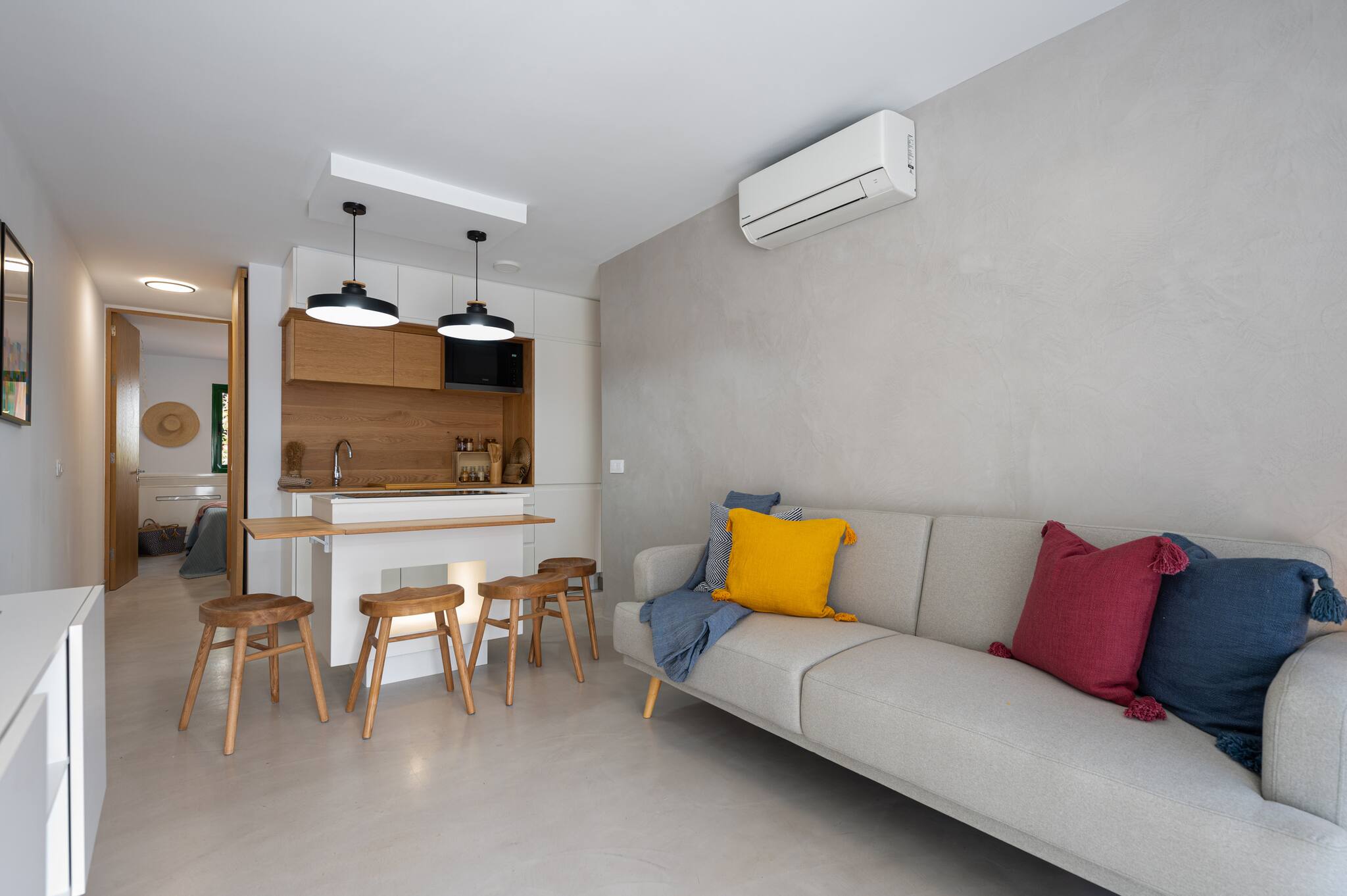 Este apartamento ofrece una amplia terraza para tumbarte al sol y ducha al aire libre. Dispone de cocina completamente equipada, sofá cama en la sala de estar y un acogedor dormitorio. Descubre la auténtica vida isleña hospedándote en Pura Vida San Agustín y vive la esencia de Gran Canaria.