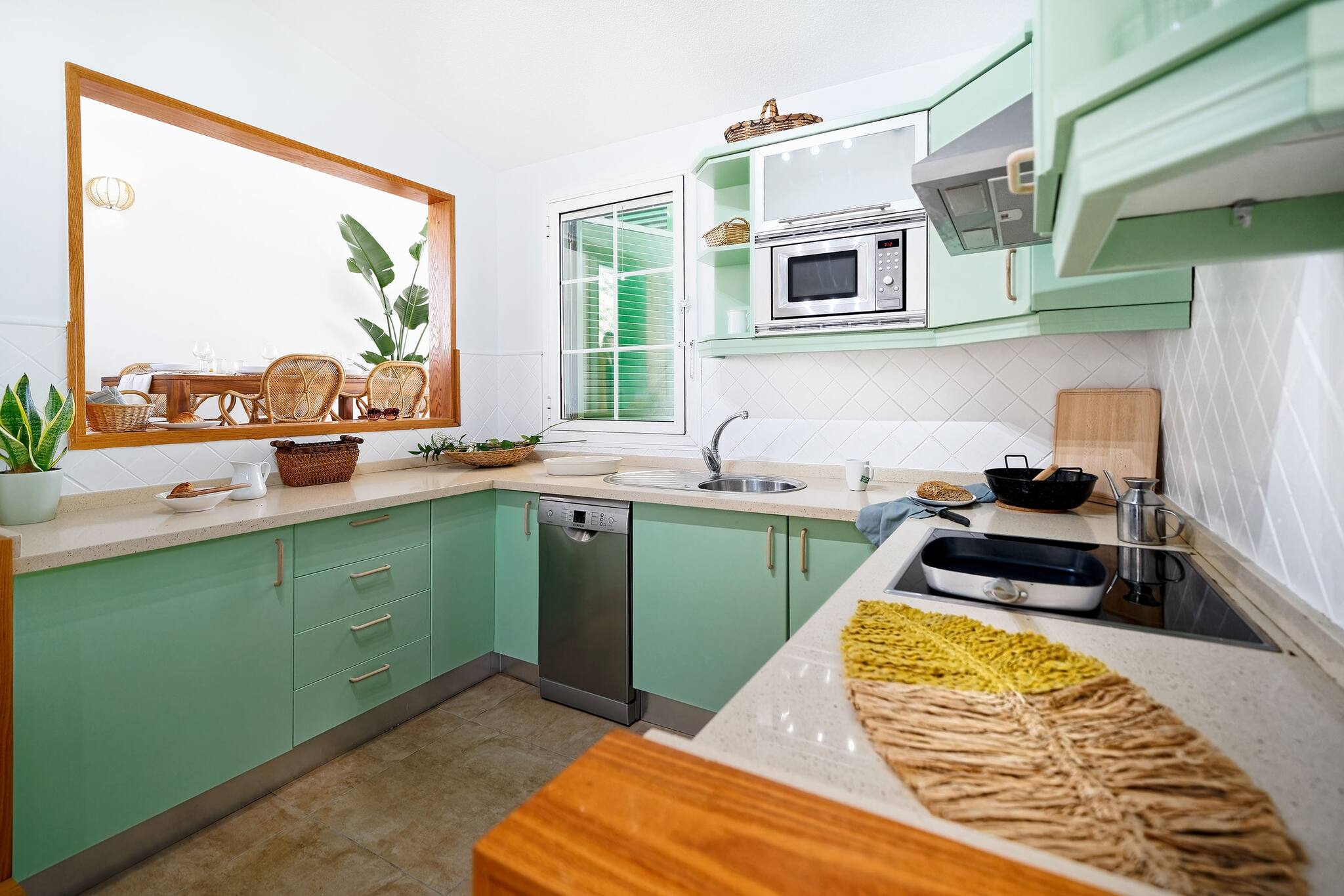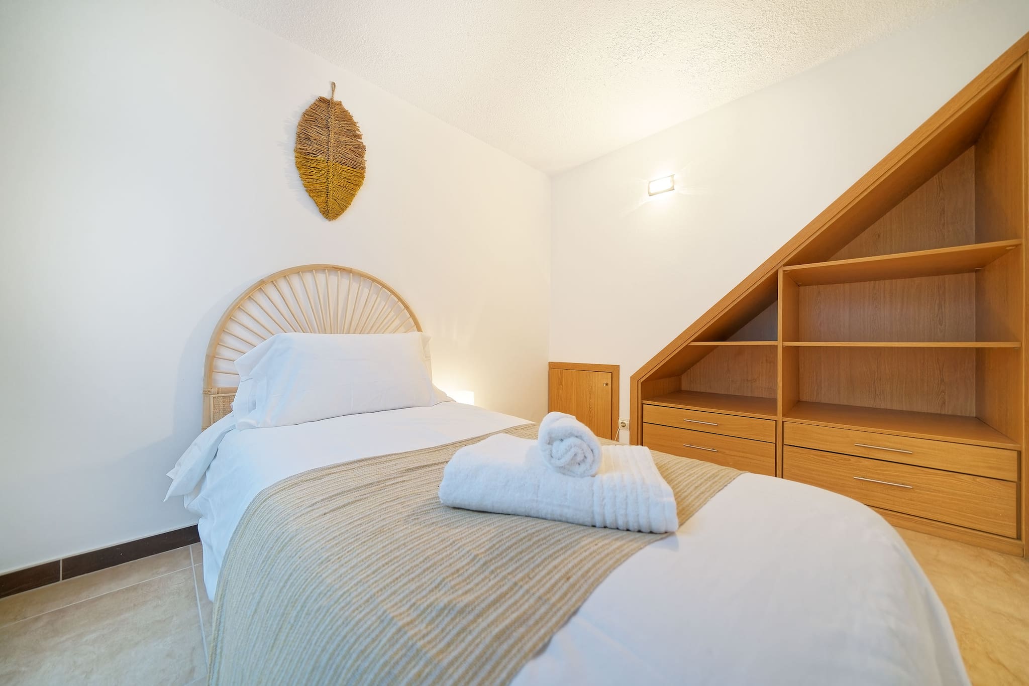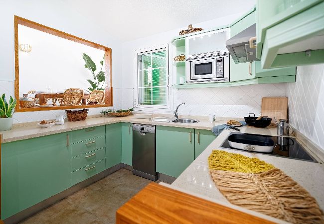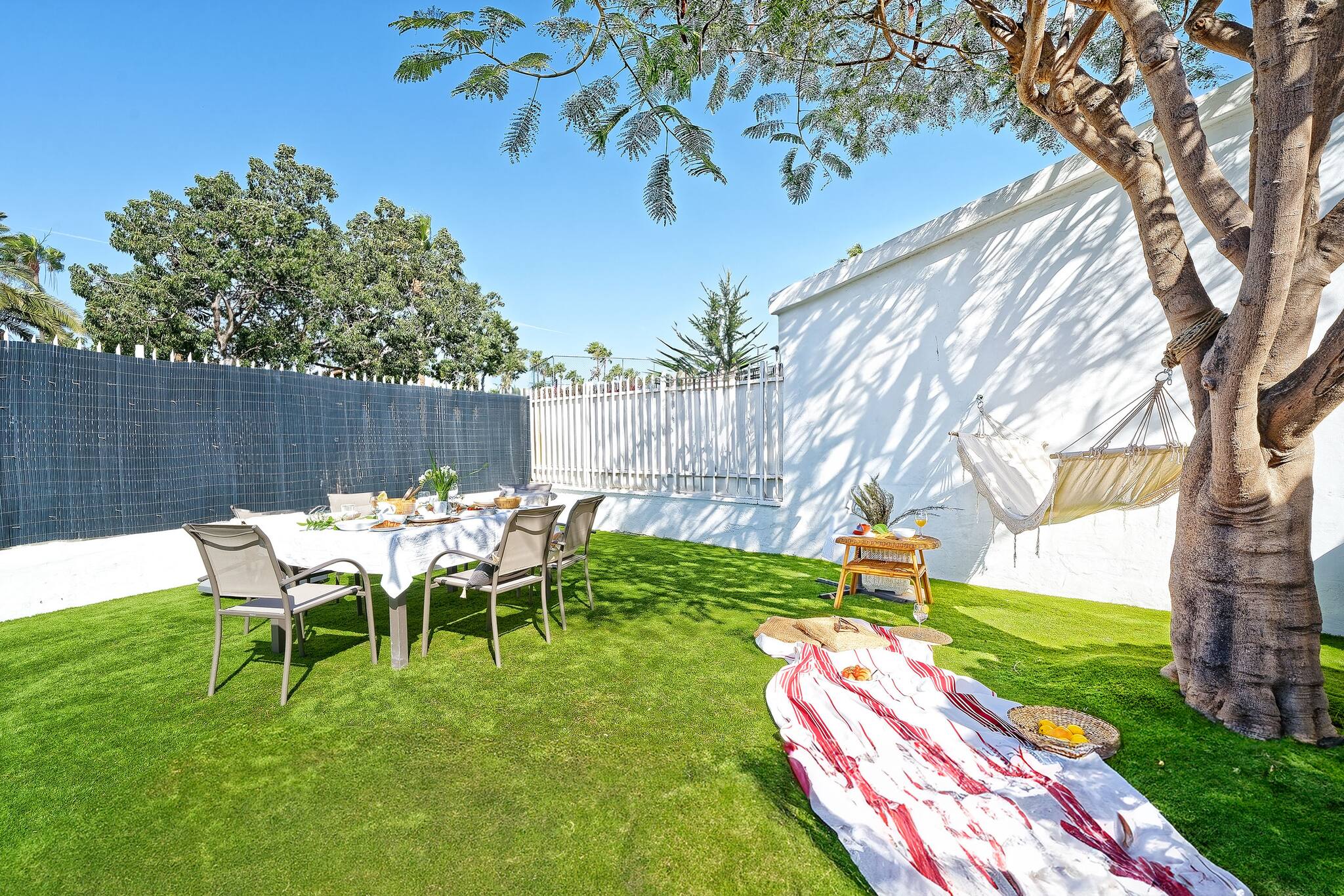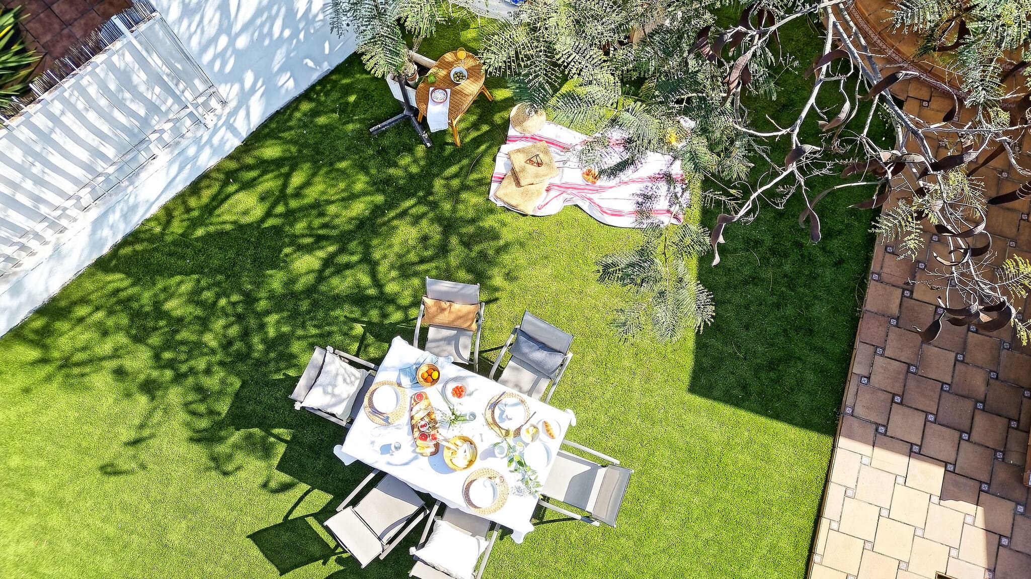 El jardín privado cuenta con una piscina climatizada de uso exclusivo, hamacas para tomar el sol y una zona de comedor exterior, perfecta para disfrutar del buen clima todo el año. El interior es amplio, funcional y está equipado con todas las comodidades necesarias para estancias de hasta 6 personas.