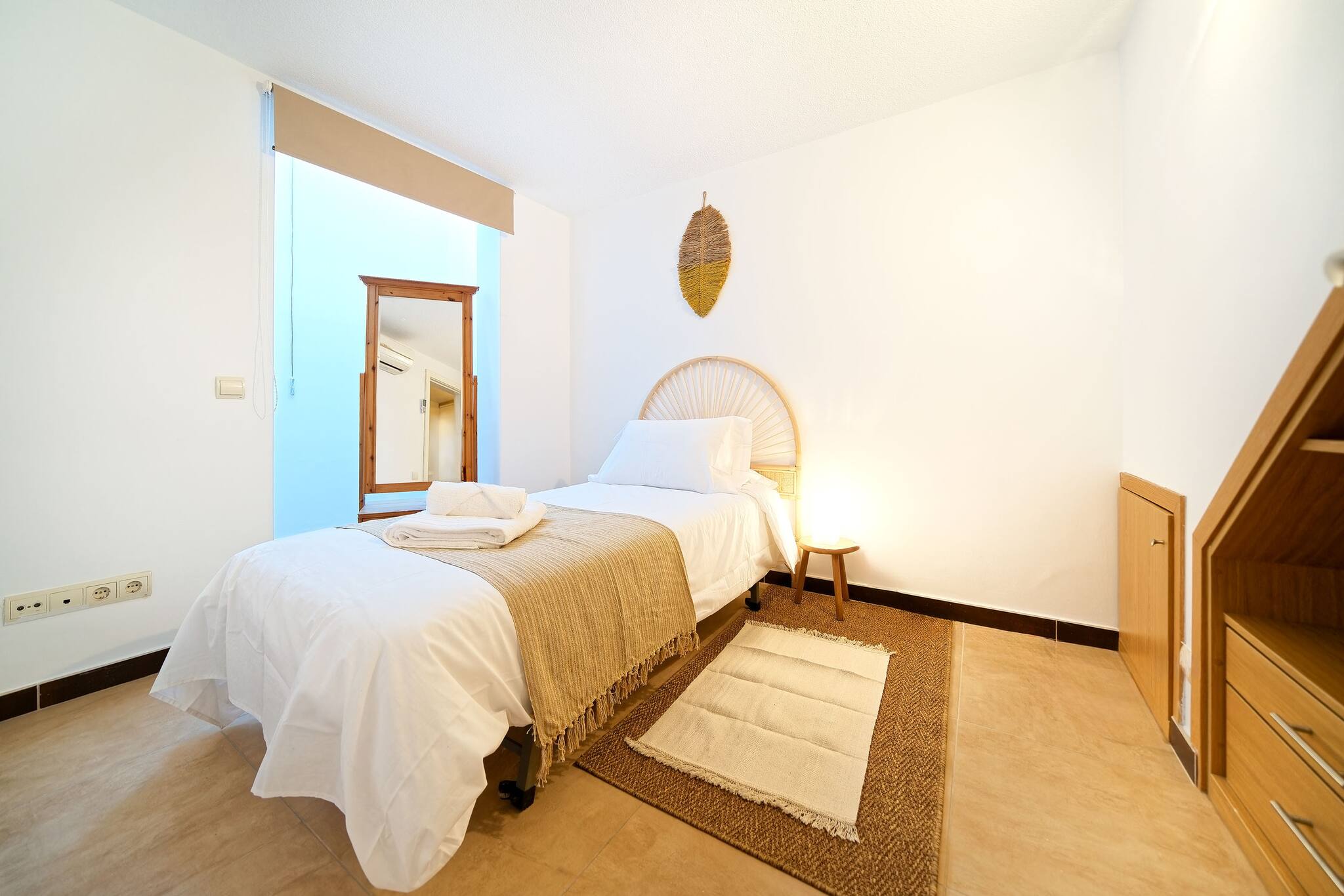 Con entrada independiente y jardín delantero privado. Vivienda de 4 dormitorios con capacidad para 6 personas. Dispone de 2 plantas, con un baño en cada una de ellas. Cocina completa con pequeña solana para lavadora, sala de estar y comedor.