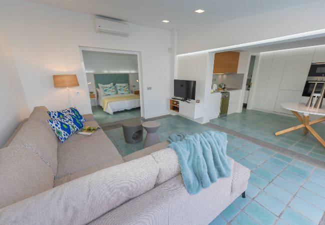 Con una superficie de 107 m² y capacidad máxima para cuatro personas, destaca por su diseño contemporáneo y funcional. Dispone de un dormitorio con cama doble, vestidor, baño con ducha, zona de lavadora y secadora, sofá cama y un amplio salón con cocina totalmente equipada. En el exterior, cuenta con una gran terraza privada con cómodas hamacas, perfecta para tomar el sol y disfrutar del entorno con total privacidad.