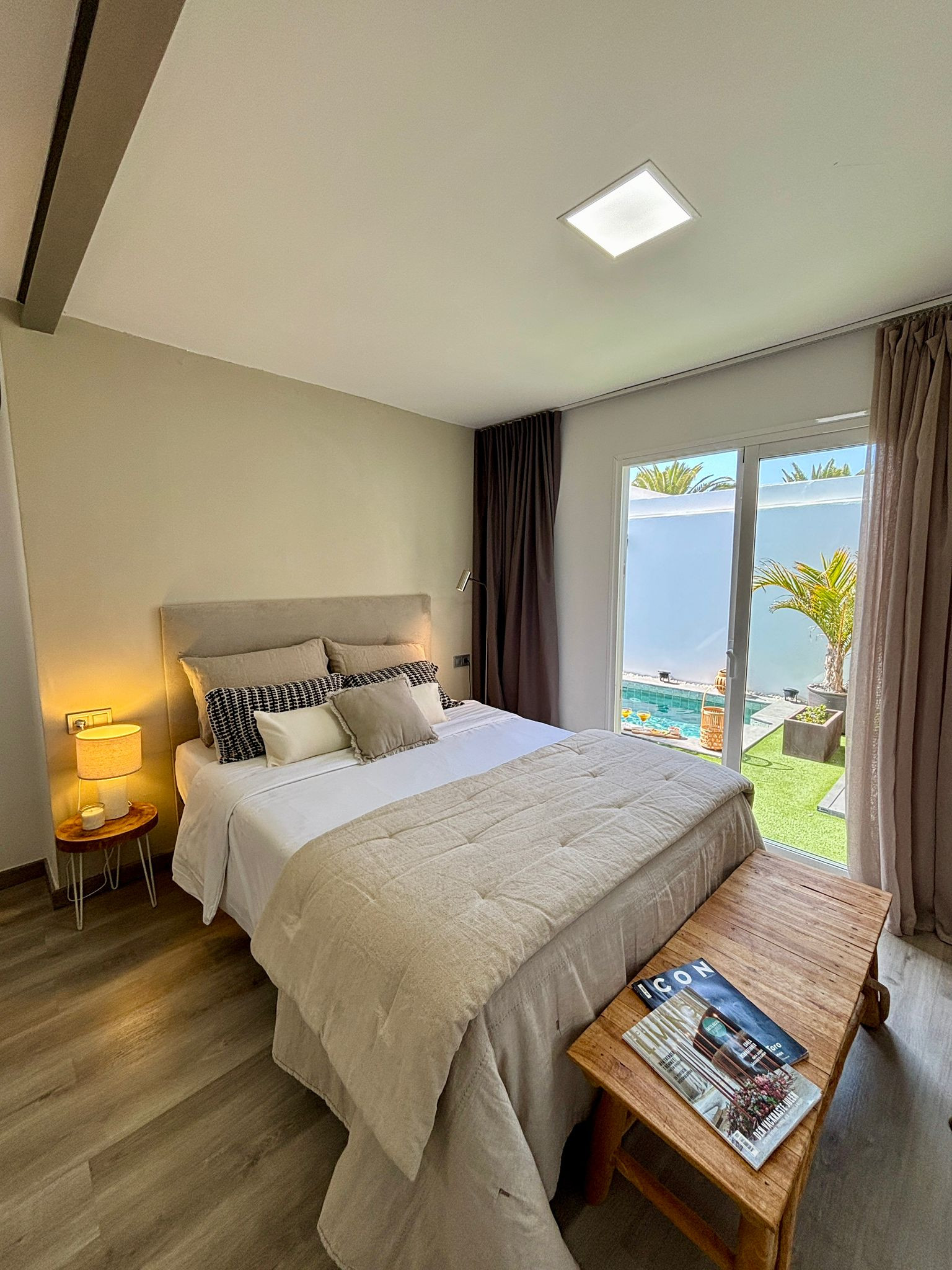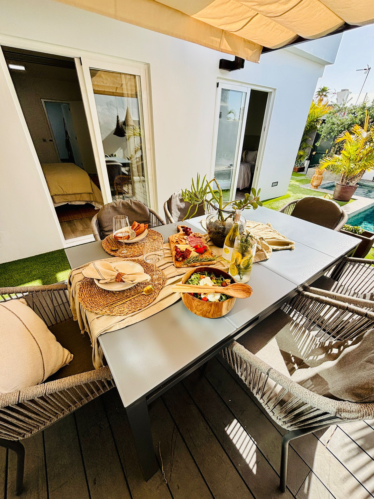 Villa Tharros destaca por su cuidado espacio exterior, con piscina privada climatizada y zona de solárium, ideal para disfrutar del clima durante todo el año. El exterior se convierte en el centro de la estancia, ofreciendo un entorno amplio y agradable para relajarse al aire libre. En el interior, cuenta con salón y cocina con salida directa a la terraza, al igual que los dormitorios, creando una conexión fluida entre interior y exterior para una estancia cómoda y bien distribuida.