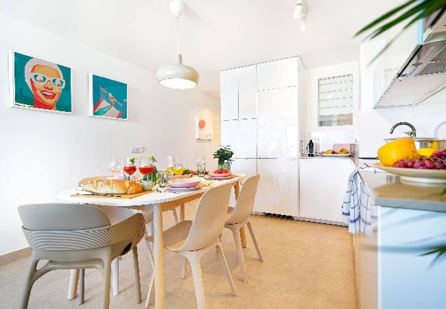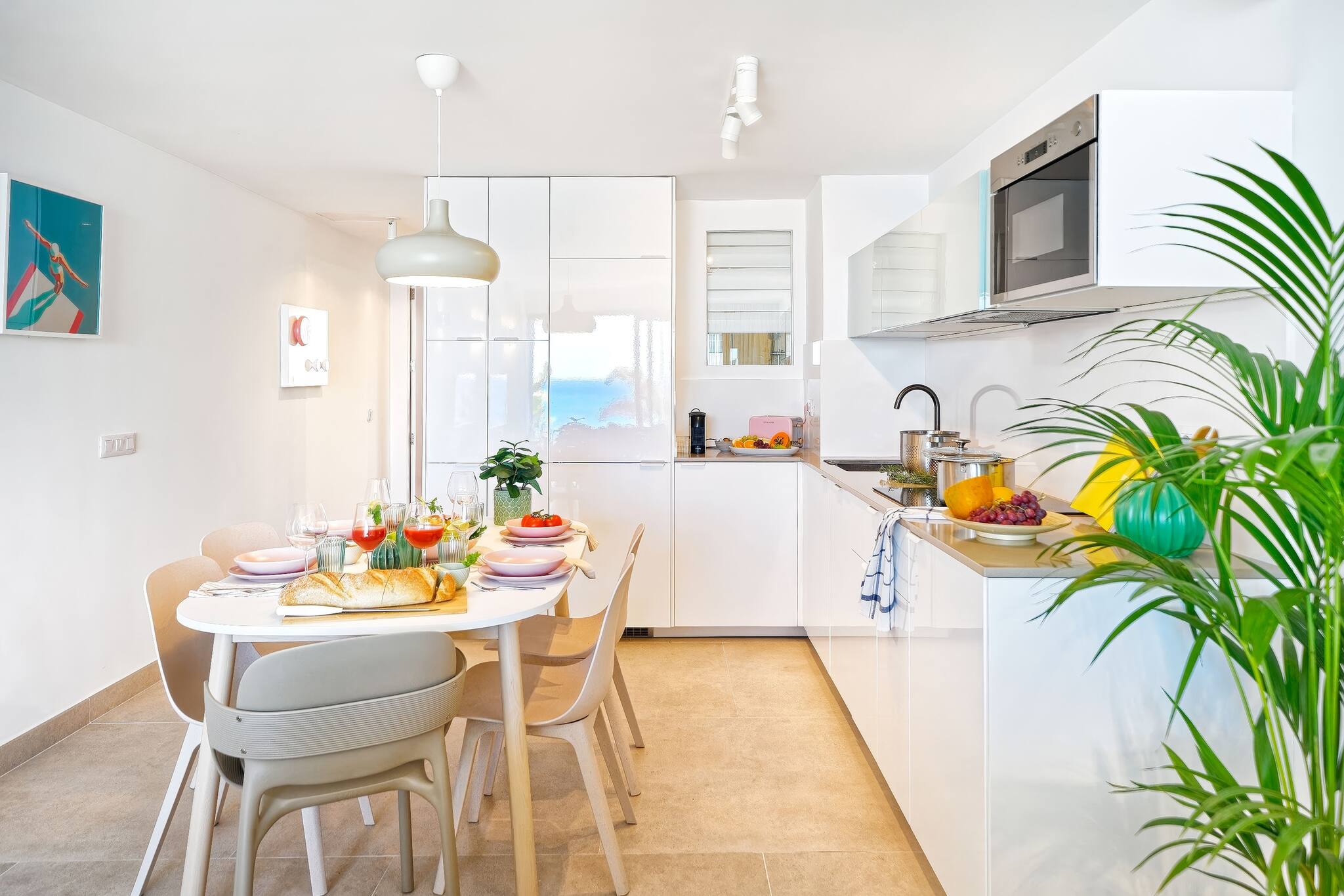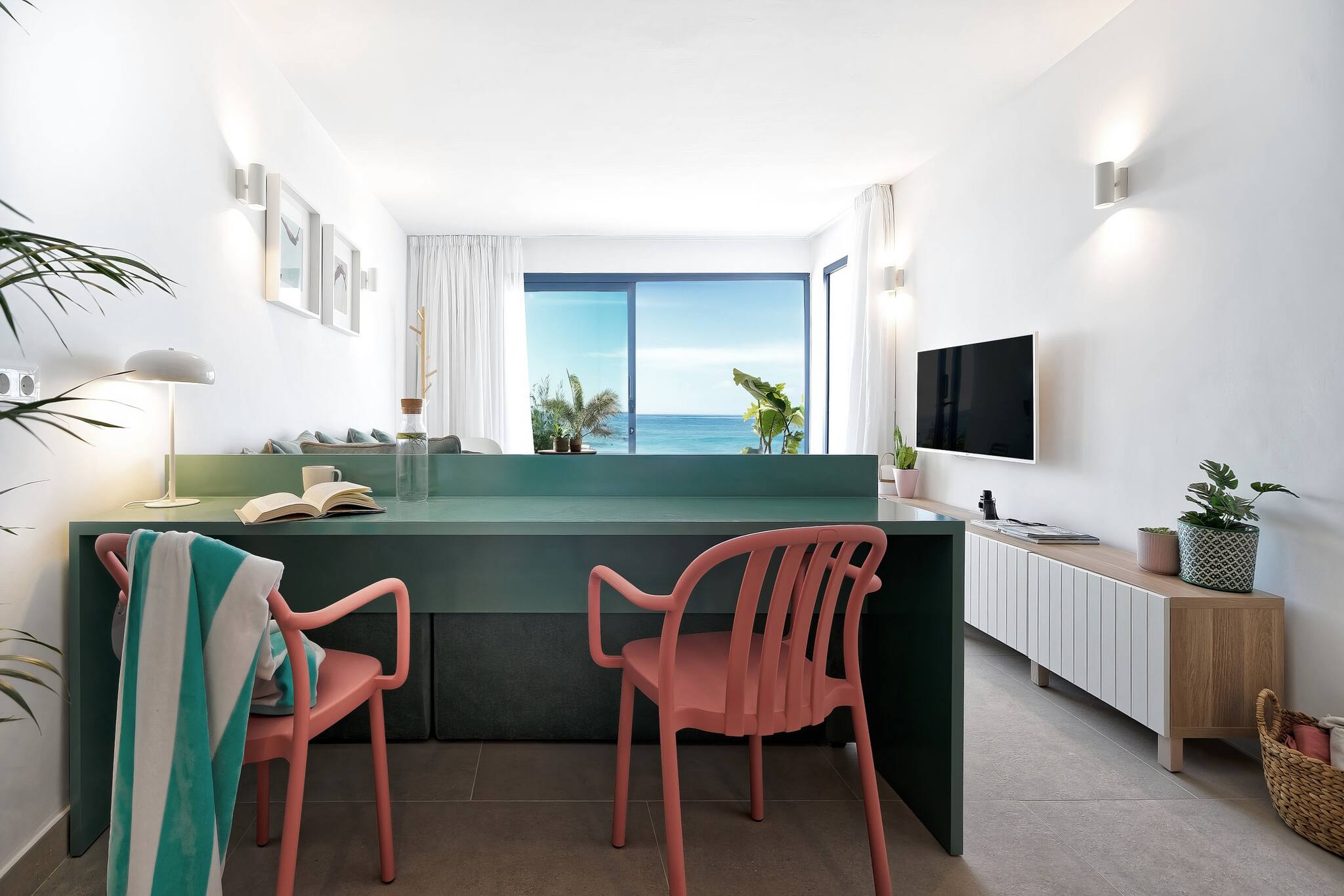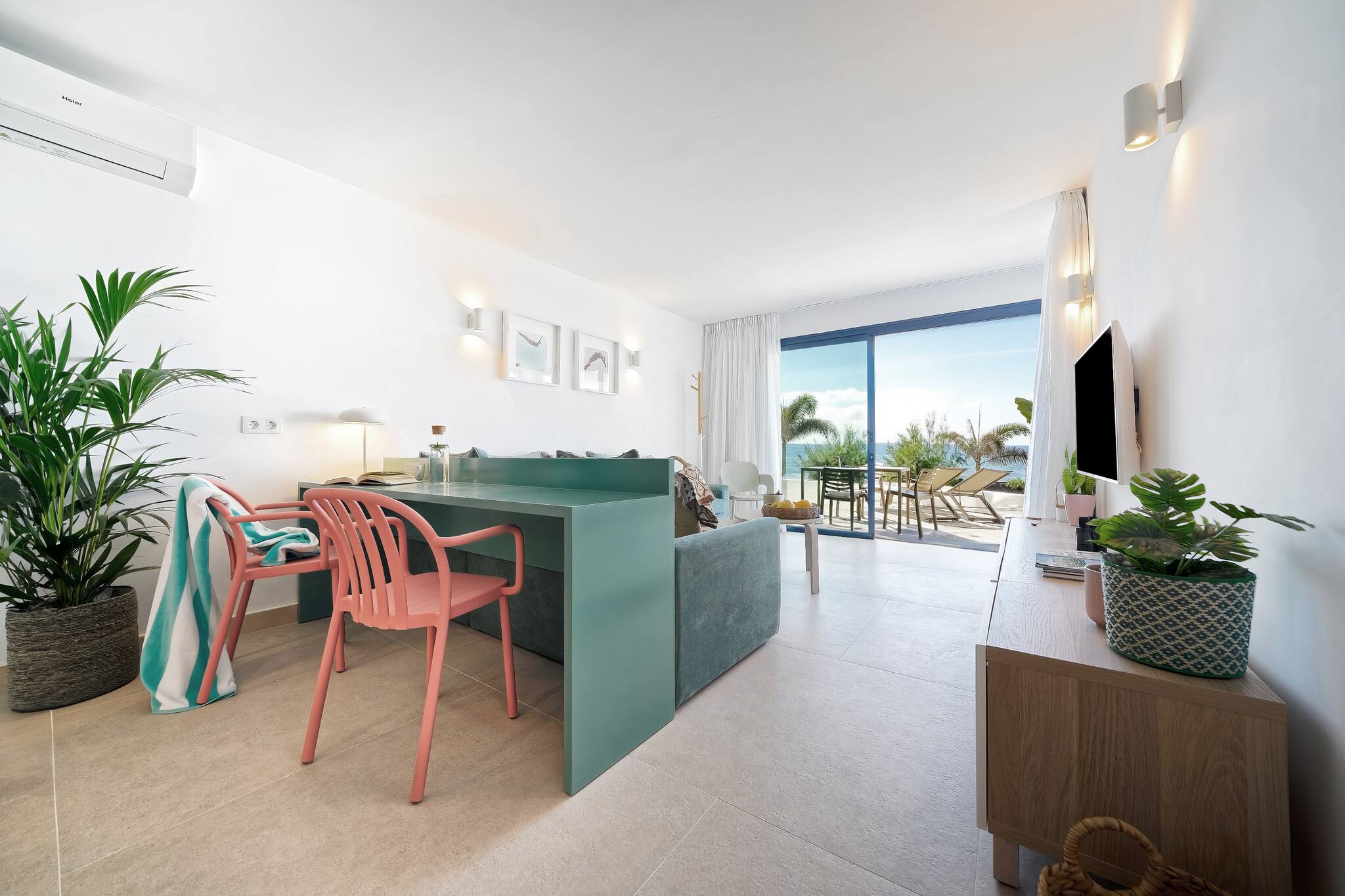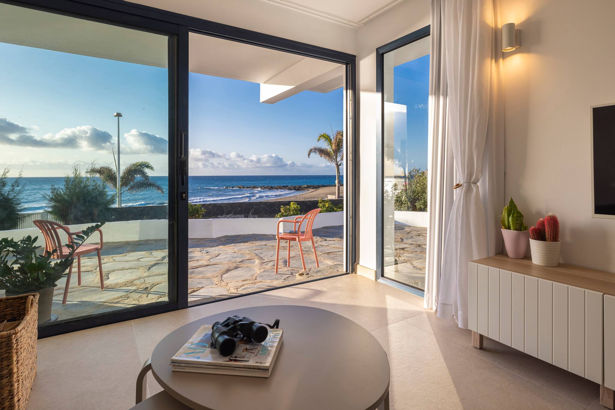 Located in the very first line of the beach, this apartment stands out for its unique style inspired by the 1950s Palm Springs architecture. With unbeatable sea views, it is ideal for couples or families with up to two small children who are looking for design, tranquility, and an exceptional location.
