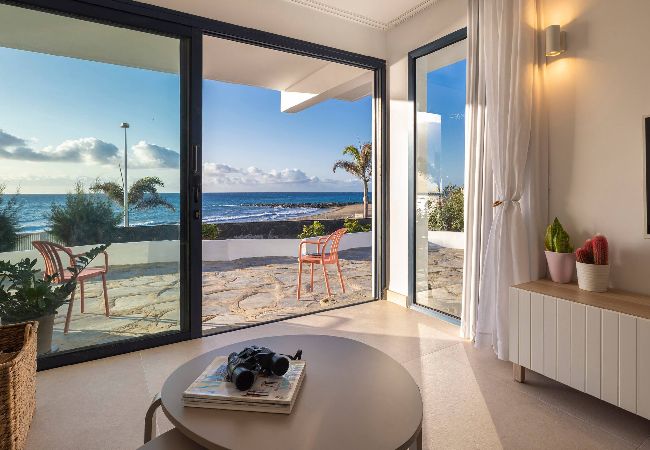 Amapola Palms is a beachfront apartment with a unique style inspired by 1950s Palm Springs architecture. Located on garden level, it offers outstanding sea views and direct access to the seafront promenade. Its private terrace with sun loungers and an outdoor dining table is perfect for enjoying the sun and the surroundings. Ideal for couples or families with children looking for design, tranquillity and a prime location by the sea.