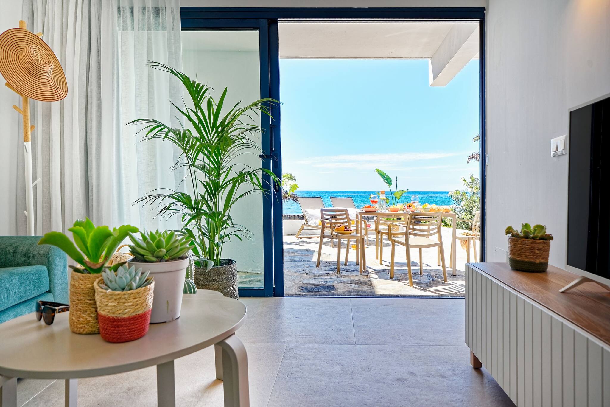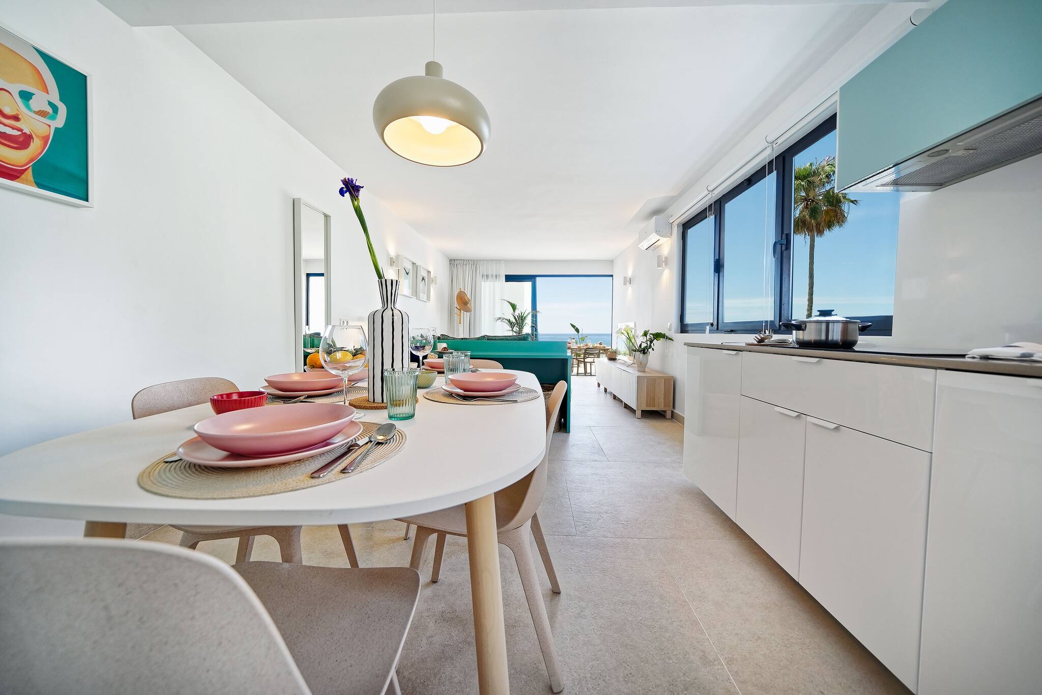 Located in the very first line of the beach, this apartment stands out for its unique style inspired by the 1950s Palm Springs architecture. With unbeatable sea views, it is ideal for couples or families with up to two small children who are looking for design, tranquility, and an exceptional location.
