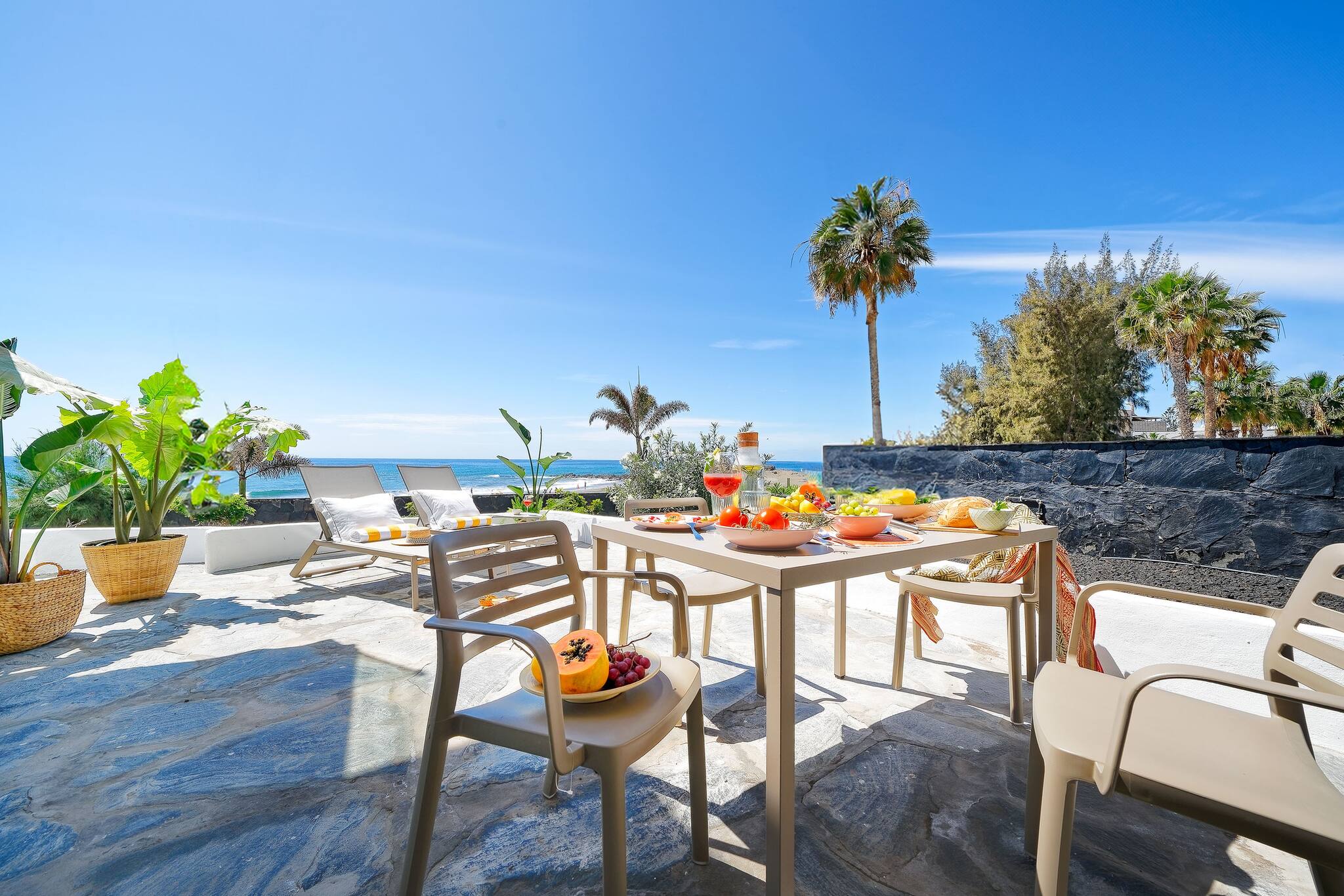 🌅 Balcony with sea views, table for 4 and 2 reclining chairs