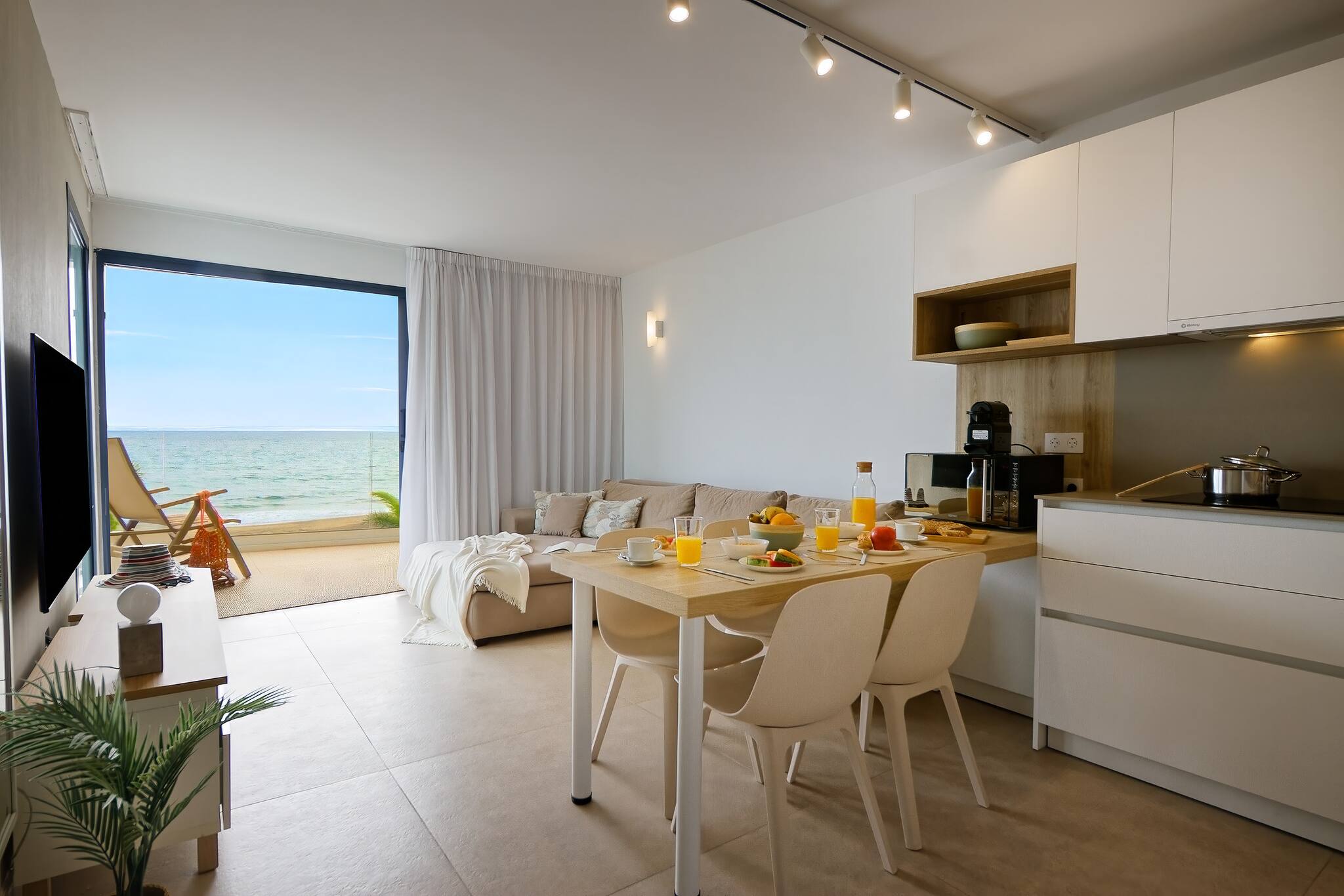 The apartment is cozy, is very light, and is 56 m². The property is located right next to the beach. It has views of waterfront.