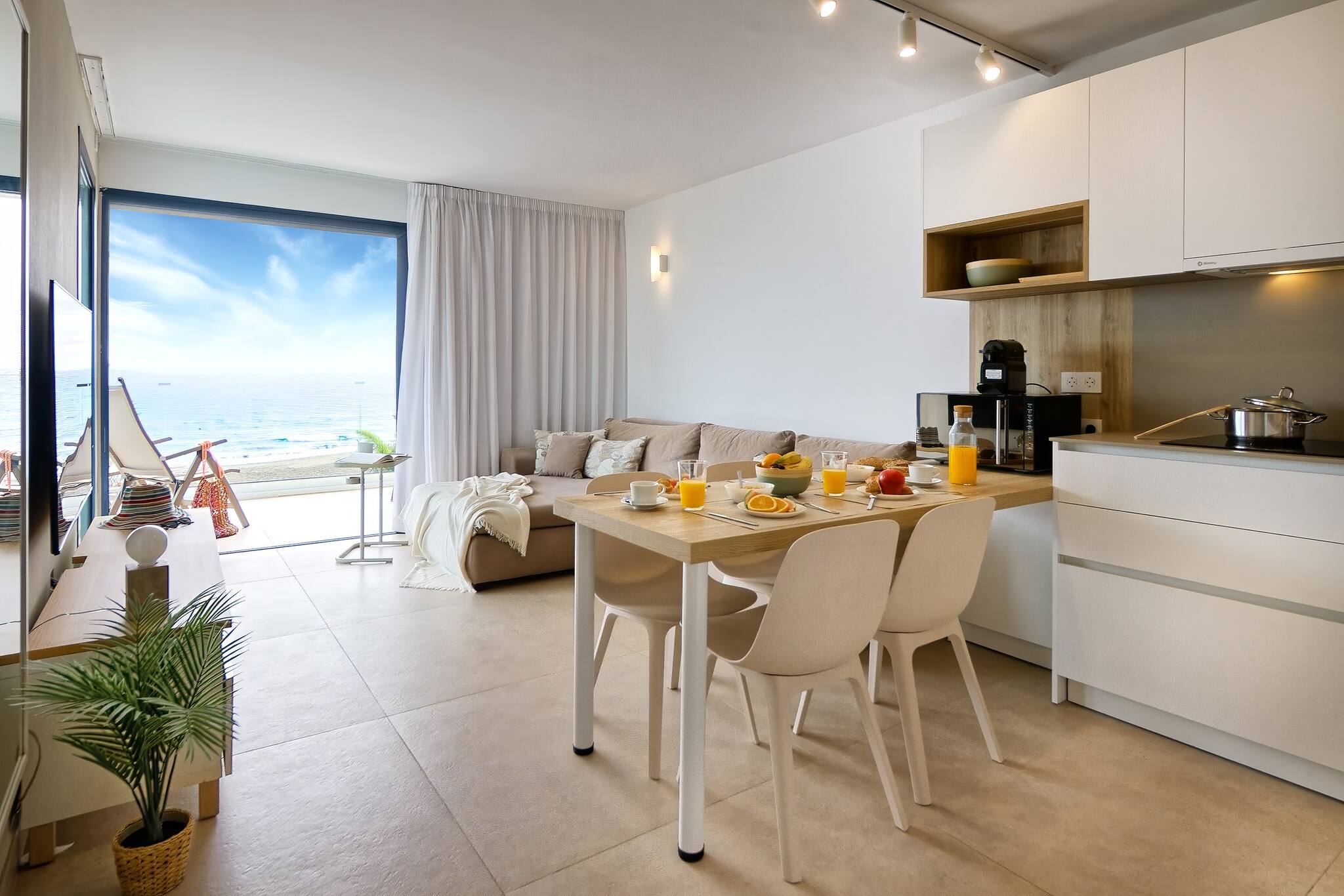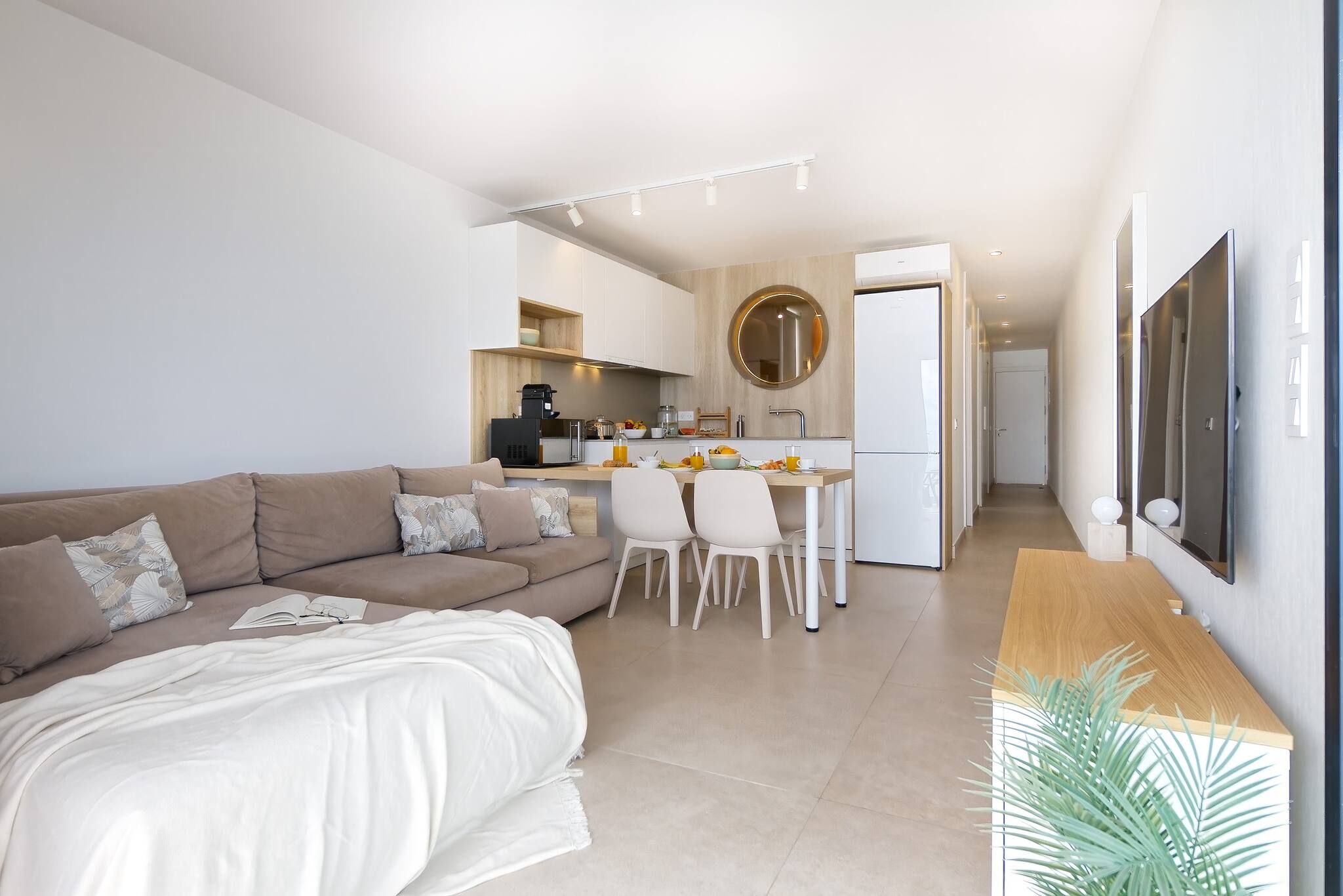 Located on the upper floor, with capacity for up to 4 people, it combines comfort, brightness and direct access to the beach through a rear door of the complex, which connects directly with the maritime avenue.