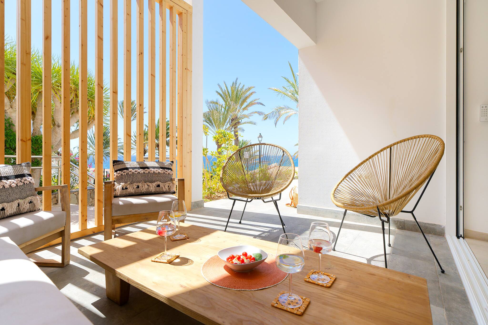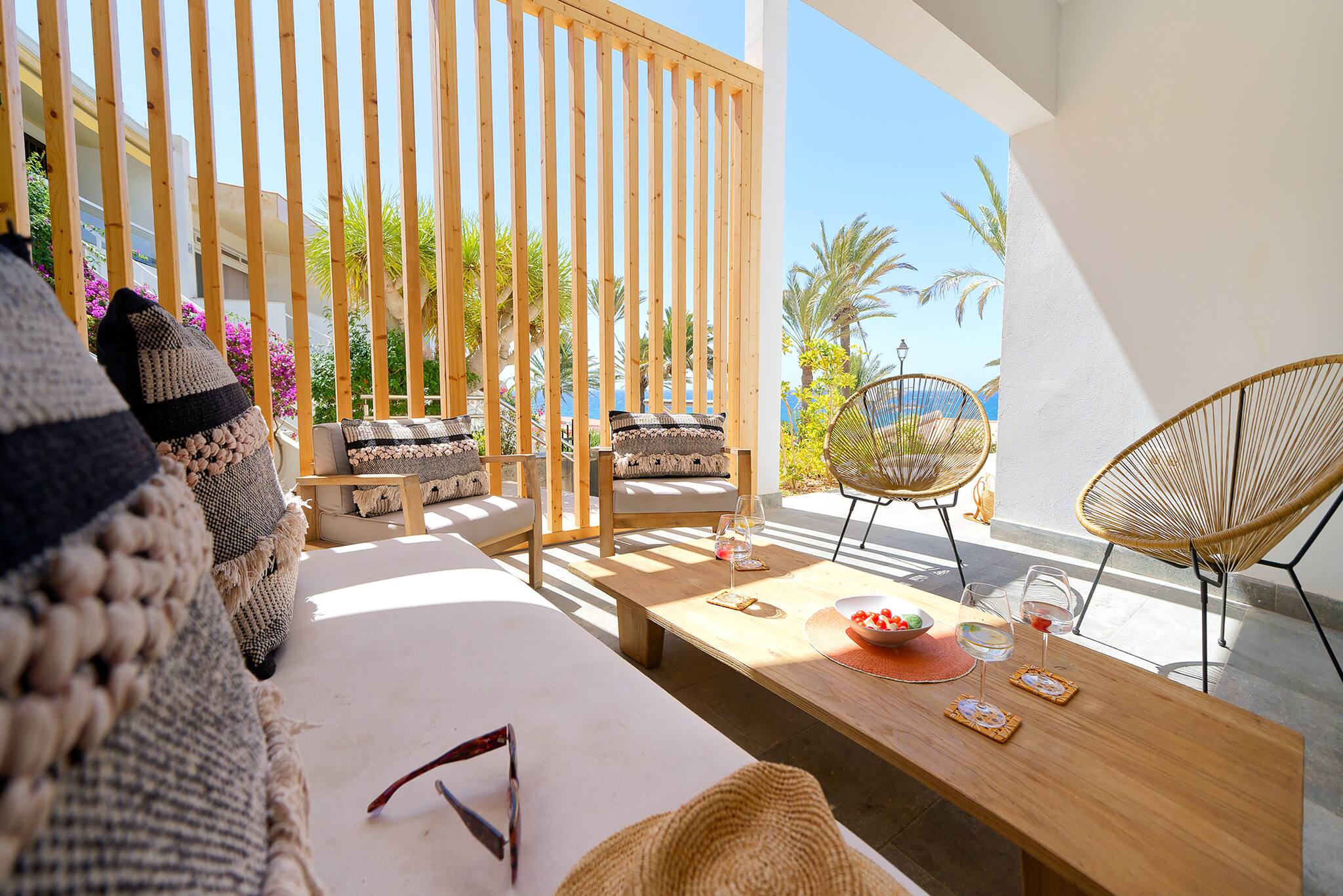 This villa is part of the exclusive Deva Beach Boutique Apartments complex, composed of only five unique accommodations in San Agustín, in the south of Gran Canaria. Although it does not have sea views from its interior, it does have them from its charming private terrace, which connects directly to the walkway that leads to the beach.