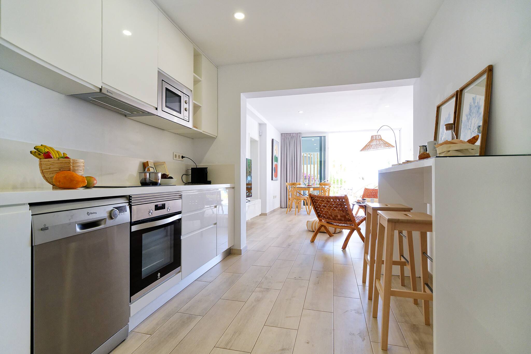 From the living room, you can access a private terrace with sun loungers, perfect for enjoying the sun and the climate of Gran Canaria. The complex has direct access to the beach avenue, which connects you to the sea in seconds.