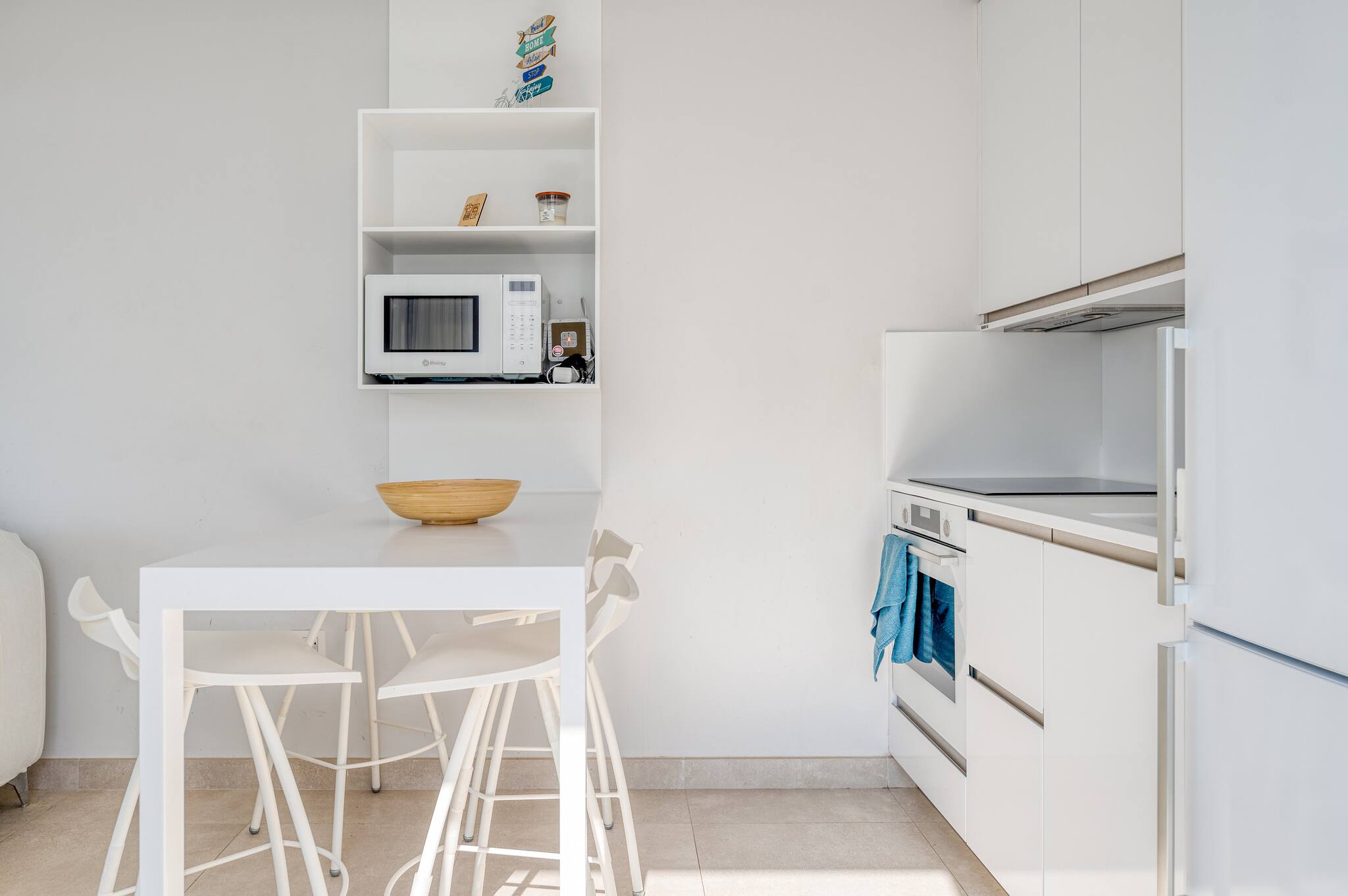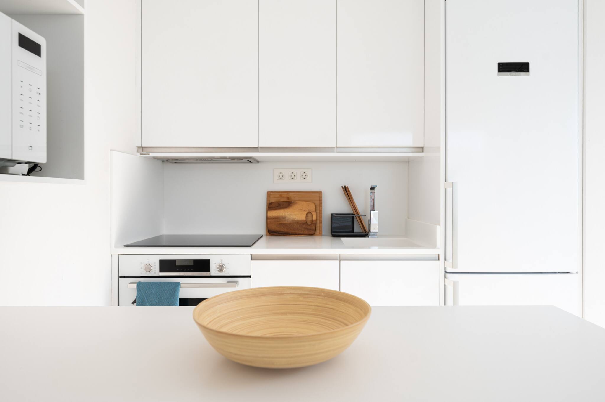In the induction open plan kitchen, refrigerator, microwave, oven, freezer, dishwasher, dishes/cutlery, kitchen utensils, coffee machine, toaster, kettle and hob are provided.