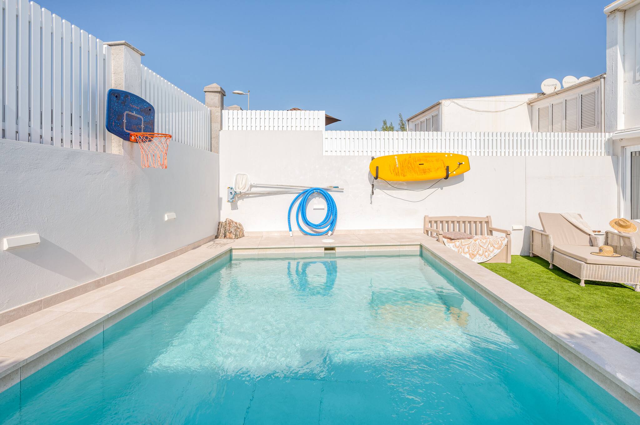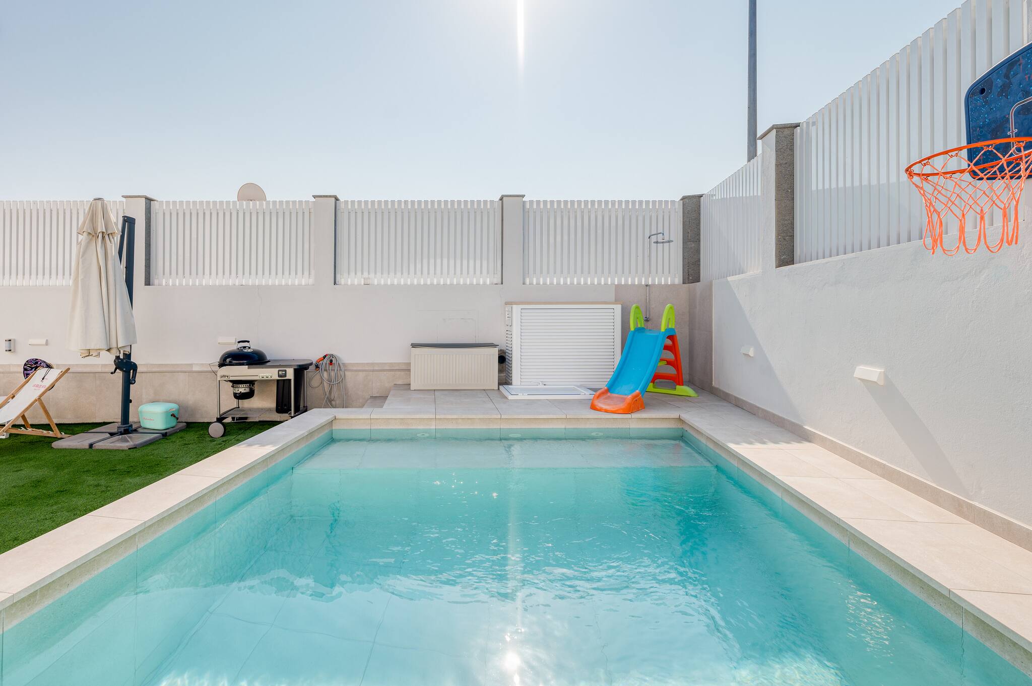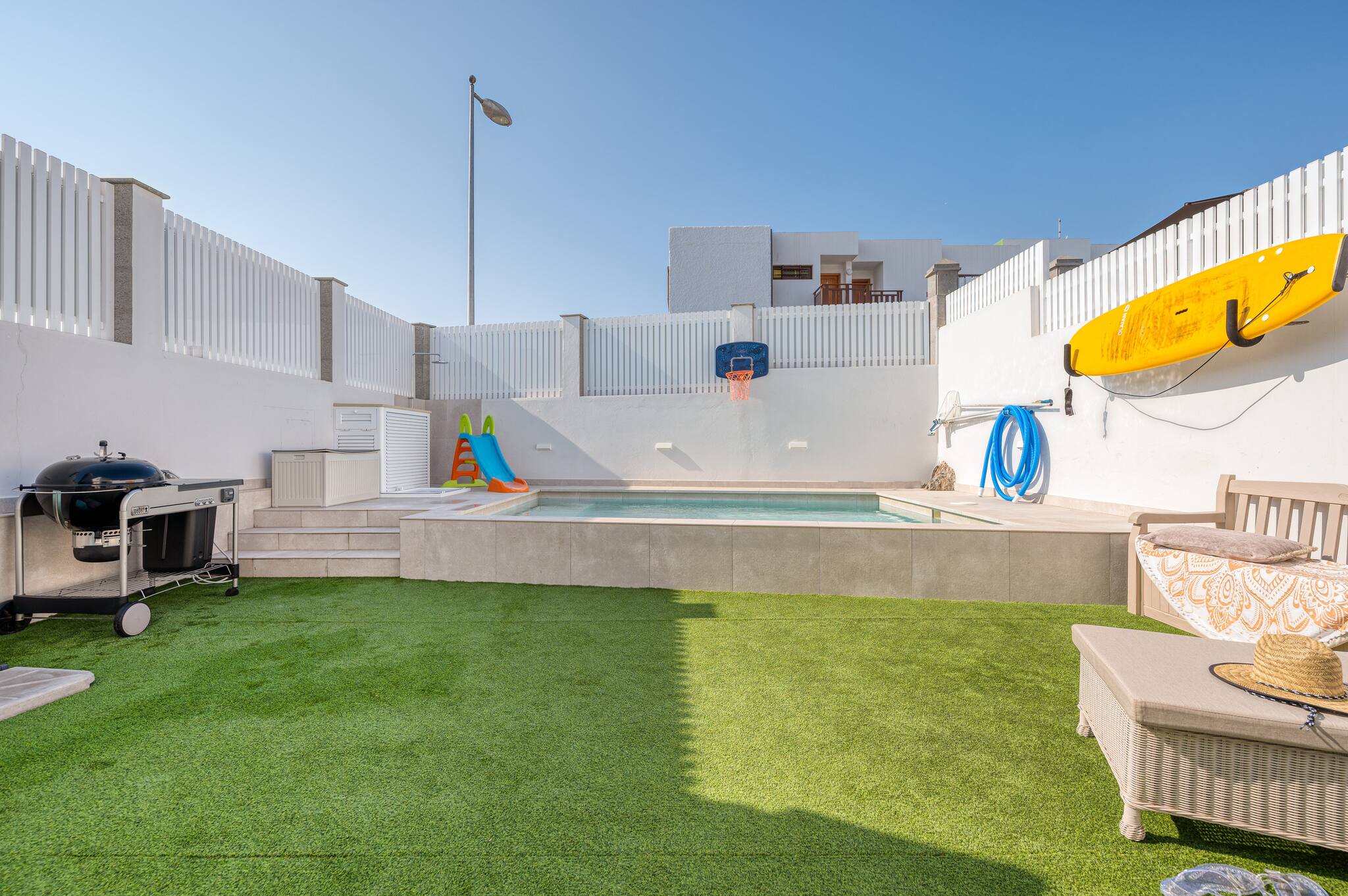 The villa in Maspalomas has 2 bedrooms and has capacity for 6 people. The villa is tastefully-furnished, is ample, and is 200 m². It has views of the garden and the swimming pool. The property is located 4 m from Holidayworld amusement park / theme park, 4 m from Parque Sur park, 4 m from Aqualand Maspalomas water park, 7 m from Campo de Golf de Maspalomas golf course, 15 m from Parque Natural de Pilancones nature reserve, 27 m from Aropuerto Gran Canaria international airport, 27 m from Aropuerto de Gran Canaria airport, 50 m from Centro San Agustín city, 100 m from Supermercado Unide supermarket, 200 m from Playa de San Agustín sand beach, 200 m from zona de Rocas San Agustín rock beach, 200 m from Clinica Roca bus station, 250 m from Clinica Roca hospital, 400 m from Centro Comercial San Agustín the restaurant, 400 m from Centro Comercial San Agustín coffee shop. The house is situated in a quiet neighborhood next to the sea.The accommodation is equipped with the following items: garden, garden furniture, terrace, washing machine, iron, internet (Wi-Fi), hair dryer, air-conditioned, private swimming pool, private heated swimming pool, 1 TV.In the induction open plan kitchen, refrigerator, microwave, oven, freezer, dishwasher, dishes/cutlery, kitchen utensils, coffee machine, toaster, kettle and hob are provided.