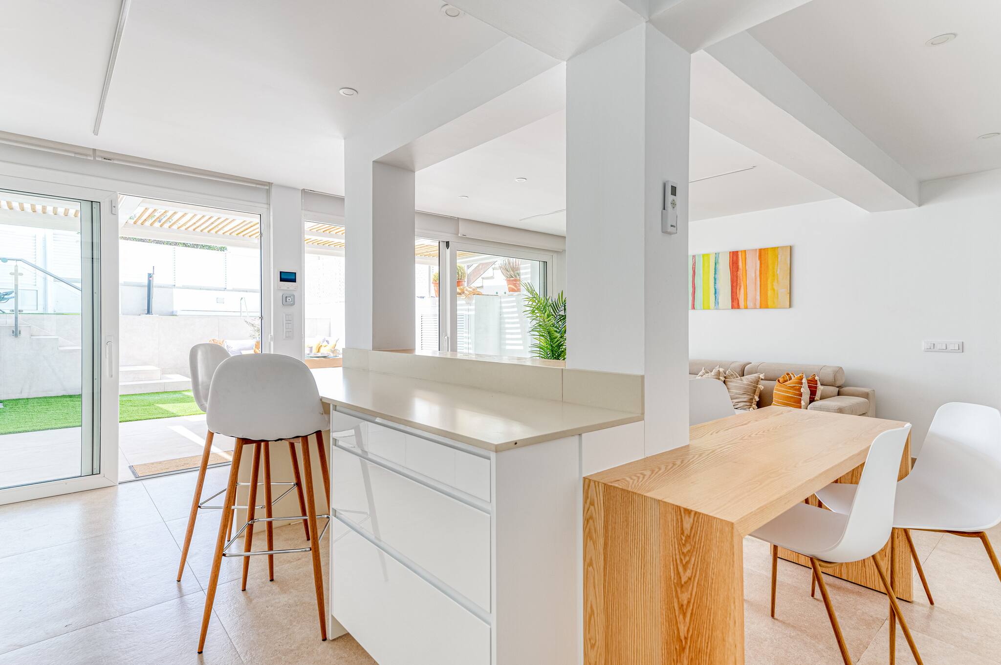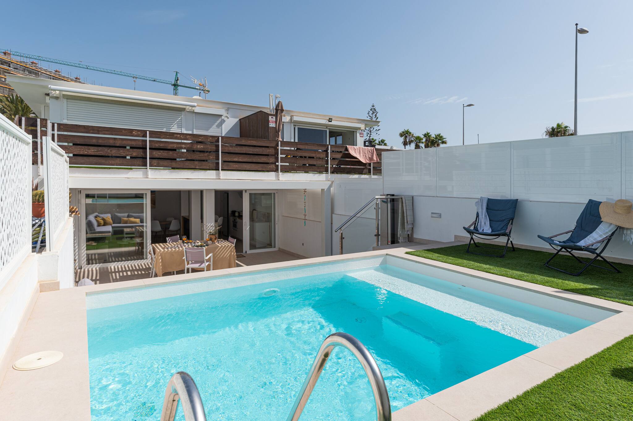 The villa in San Bartolomé de Tirajana has 3 bedrooms and has capacity for 6 people. The villa is tastefully-furnished, is modern, and is 106 m². It has views of the swimming pool. The property is located 15 m from Parque Natural de Pilancones nature reserve, 40 m from Pizzeria Loopy the restaurant, 40 m from Supermercado Unide supermarket, 50 m from Centro San Agustín city, 100 m from Playa de San Agustín sand beach, 100 m from zona de Rocas San Agustín rock beach, 250 m from Clinica Roca bus station, 250 m from Clinica Roca hospital, 400 m from Centro Comercial San Agustín coffee shop, 4 km from Holidayworld amusement park / theme park, 4 km from Parque Sur park, 4 km from Aqualand Maspalomas water park, 7 km from Campo de Golf de Maspalomas golf course, 24 km from Aropuerto de Gran Canaria airport, 24 km from Aropuerto Gran Canaria international airport. The house is situated in a quiet neighborhood next to the sea.The accommodation is equipped with the following items: garden, garden furniture, washing machine, dryer, iron, internet (Wi-Fi), hair dryer, air-conditioned, private swimming pool, private heated swimming pool, 1 TV.In the induction open plan kitchen, refrigerator, microwave, oven, freezer, dishwasher, dishes/cutlery, kitchen utensils, coffee machine, toaster, kettle, juicer and hob are provided.